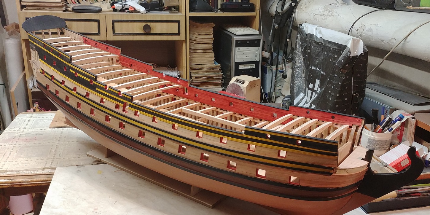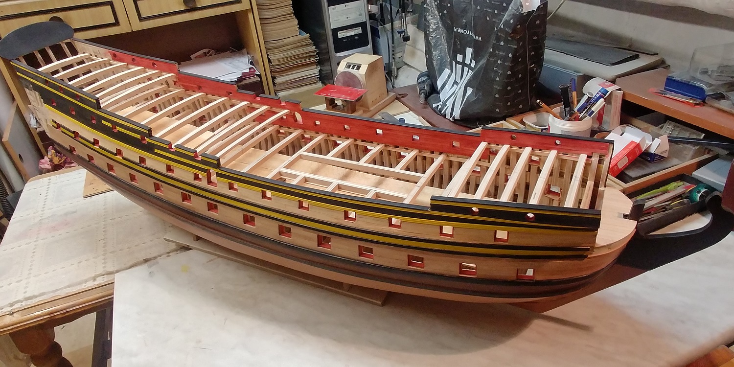 Witam po letniej przerwie.Aura pozwoliła wrócić do stoczniowych zajęć.Komplet pokładów, oczywiście w stanie surowym.I to tyle.Pozdrawiam.Kazimierz.