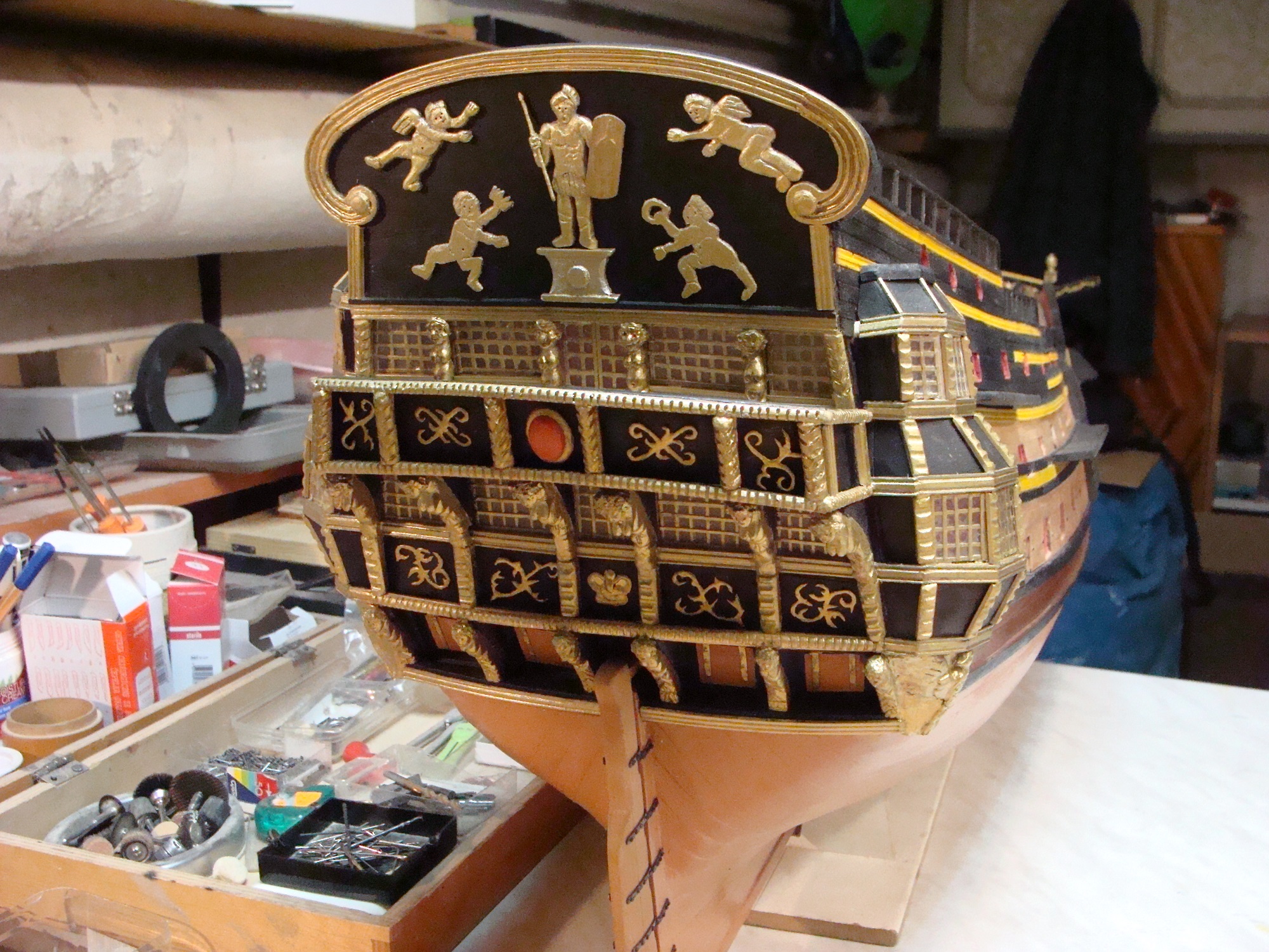 .Zostały jeszcze rzeżby pana i niewolnika po bokach, jakieś oz dupki i pawęż.Pozostawiam to własnej inwencji.Nie wzoruję się całkowicie