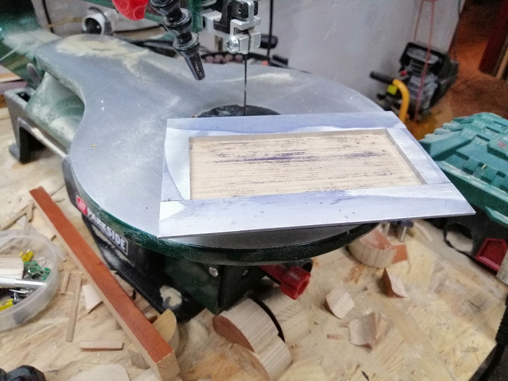 Szkielet wykonuję z przeskalowanych wręg z Małego Modelarza, które nakleiłem na sklejkę o grubości 4 mm. Wycinam je za pomocą wyrzynarki włosowej z Lidla: Parkside.