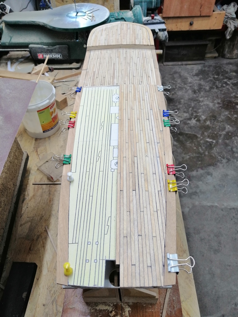 Kolega jest na samym początku budowy, więc jest moim zdaniem ostatnia chwila, żeby ten pokład skorygować. Warto spróbować, czy idzie odklejać deseczki nieniszcząco. Dołączam się do opinii, że tak pięknie powstający żaglowiec zasługuje na prawidłowe wykończenie pokładu (zwłaszcza na łukach). Tym bardziej, że im większy model, tym uproszczenia wyglądają gorzej... a przecież Kolega, co widać, ma rękę do tej roboty.
