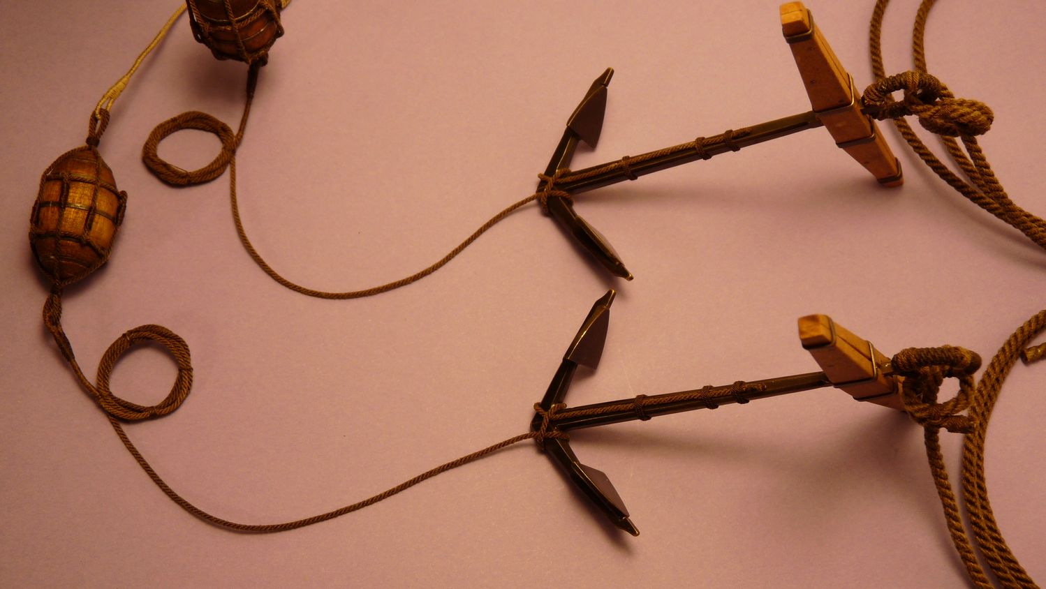 Artek, bardzo Ci dziękuję. Kotwica. Pływaki z olchy, wykorzystałem też ołów, który łatwo się układał na boi. Ołów jest poczerniony i zabezpieczony werniksem żeby się nie utleniał. Pozdrawiam Piotrek.