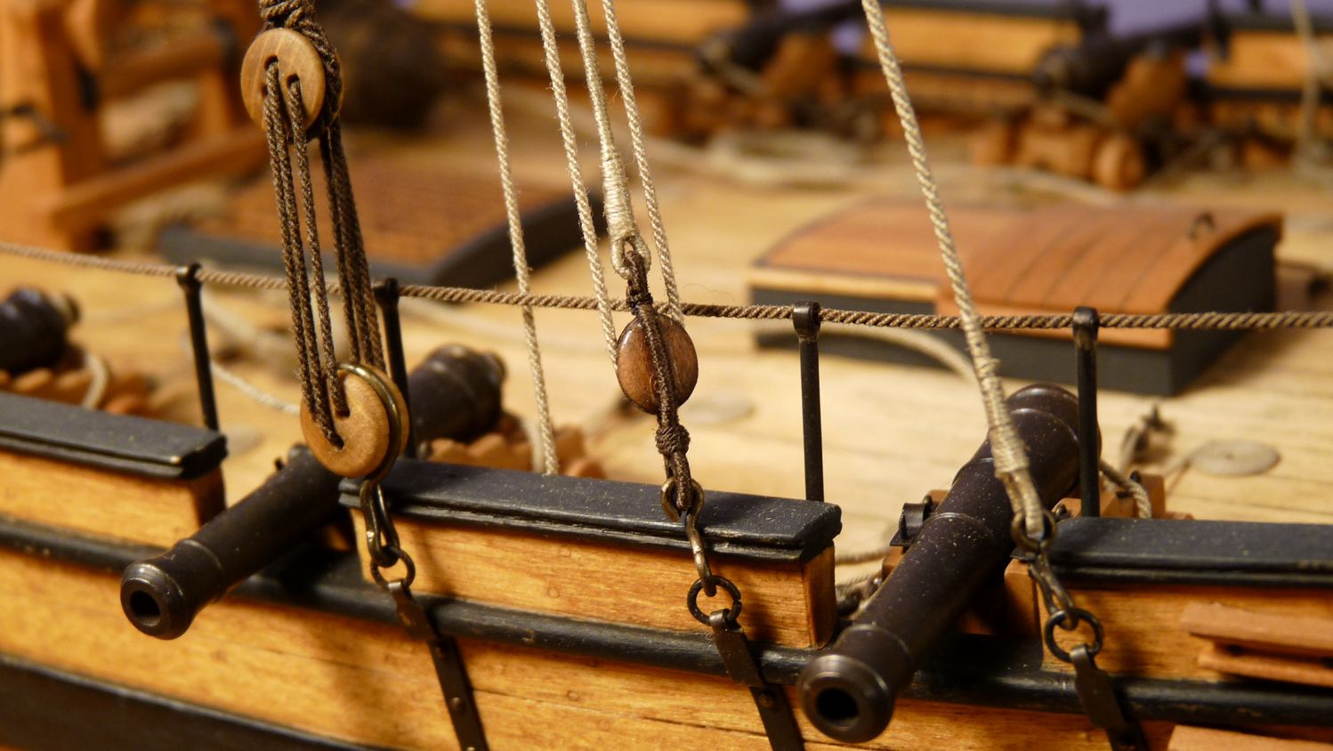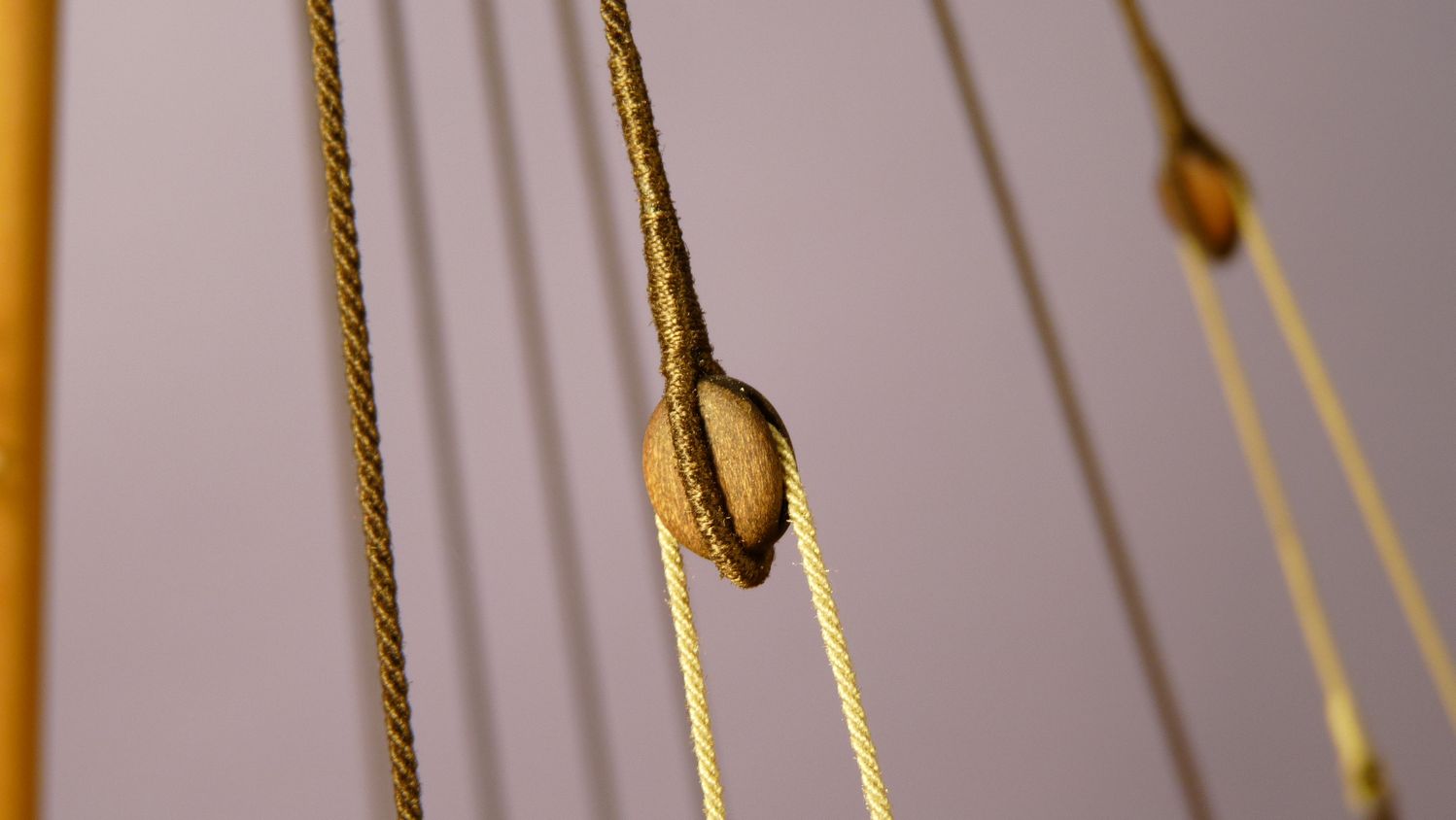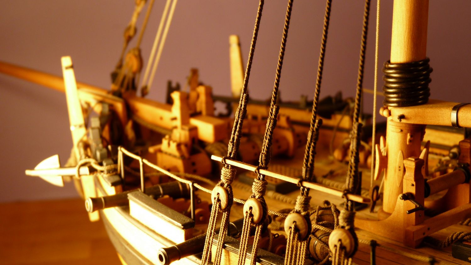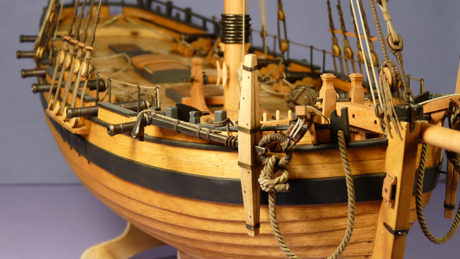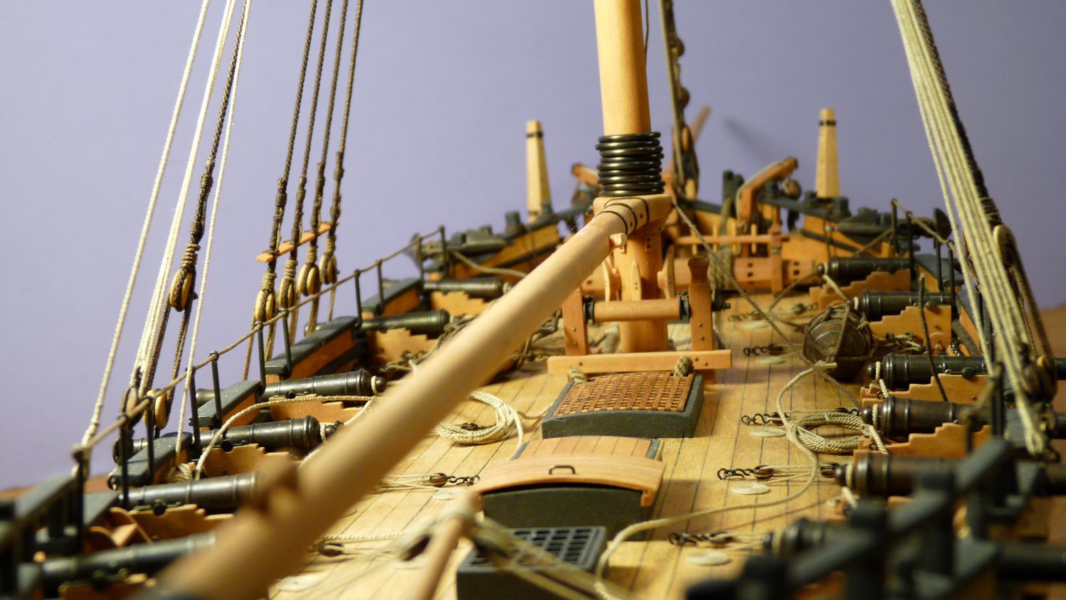 Ciekawy jest ten inny niz zazwyczaj jufers (czy moze heart?) z piecioma otworami i jego uzycie w talrepie do zamocowania foksztagu do kilu (stewy dziobowej) - widze cos takiego po raz pierwszy!