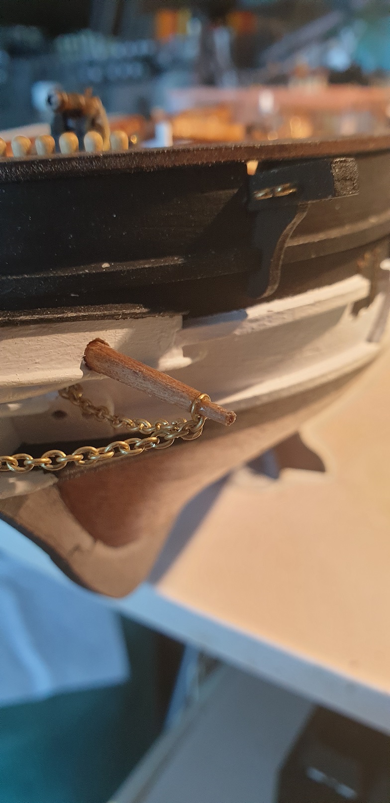 O ile wiem to oryginalnie były one na pewno drewniane oraz zrobiłem nowe oczka do lin żeby trochę dopasować skale