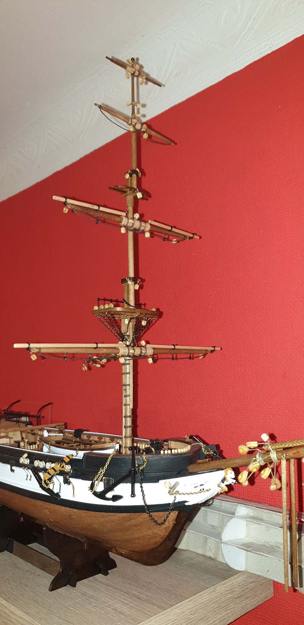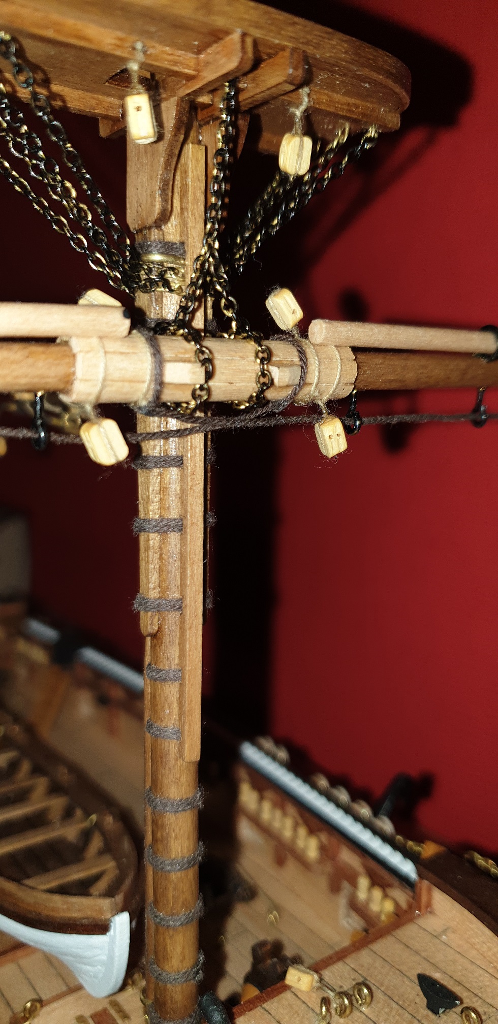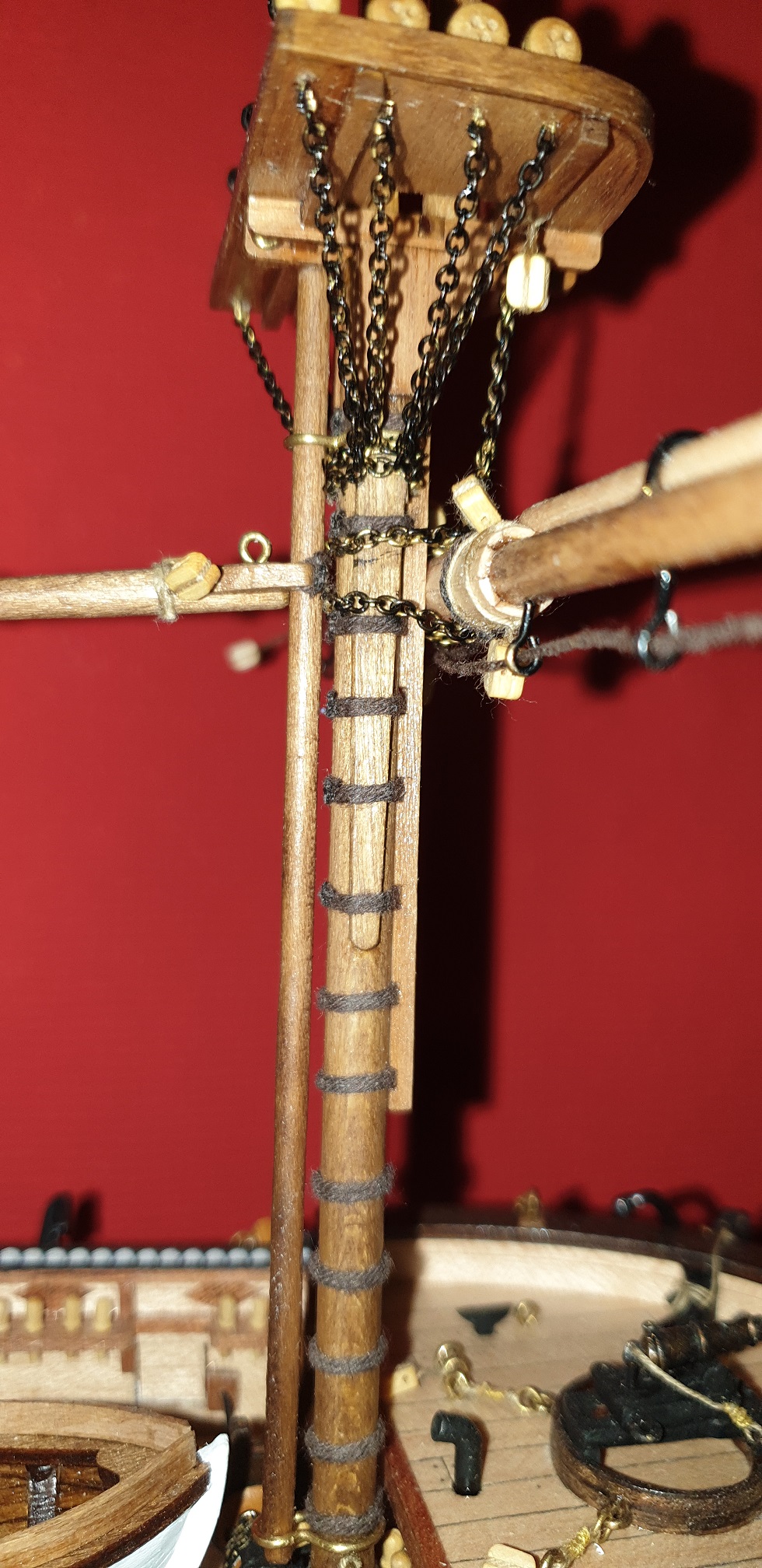Mocowanie pierwszej głównej reji oparłem na rysunkach z książki. Chciałem się jak najbardziej zbliżyć do je mocowania wg rysunków