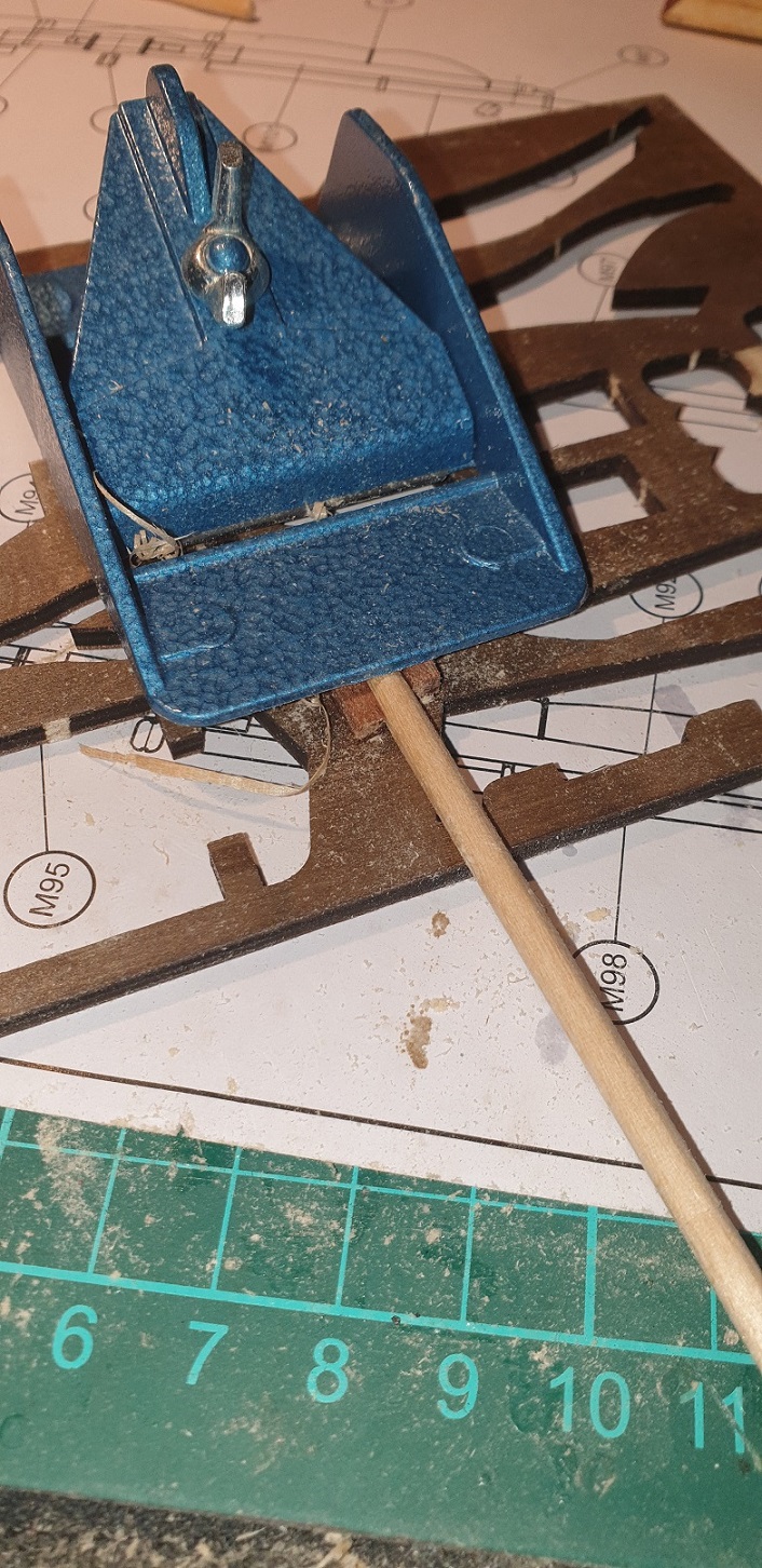 Niestety nie mam mini tokarki ale wymyśliłem coś co pozwoliło mi zrobić listewki 3mm i zakończyć cale omasztowanie okrętu