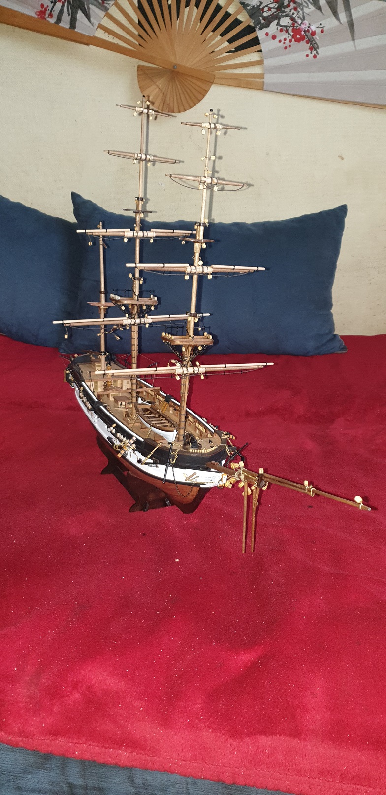 Wszystkie maszty gotowe tak wygląda model przed zaczęciem kładzeniem olinowania.