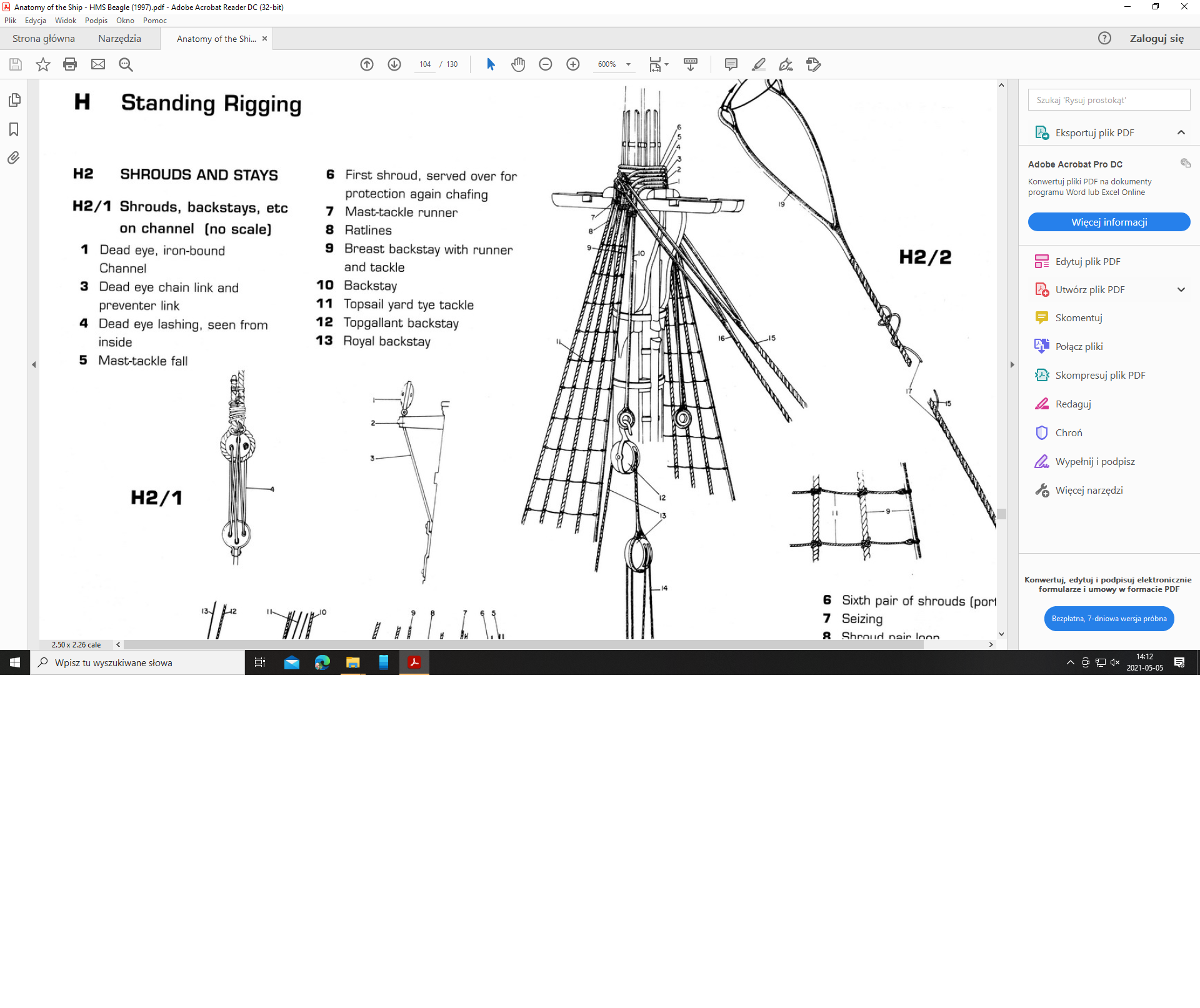 Poza tym, na te sruby rzymskie (turnbuckles), bylo troche za wczesnie - pierwsze z nich zostaly opatentowane w drugiej polowie XIX wieku, a Twoj statek byl zwodowany na poczatku tego wieku (o ile wiem).