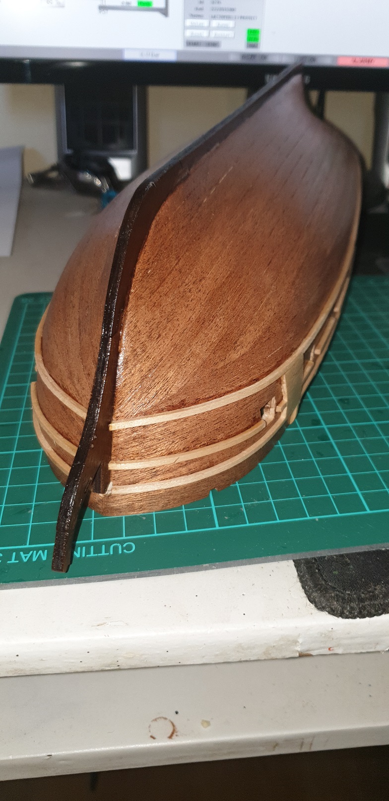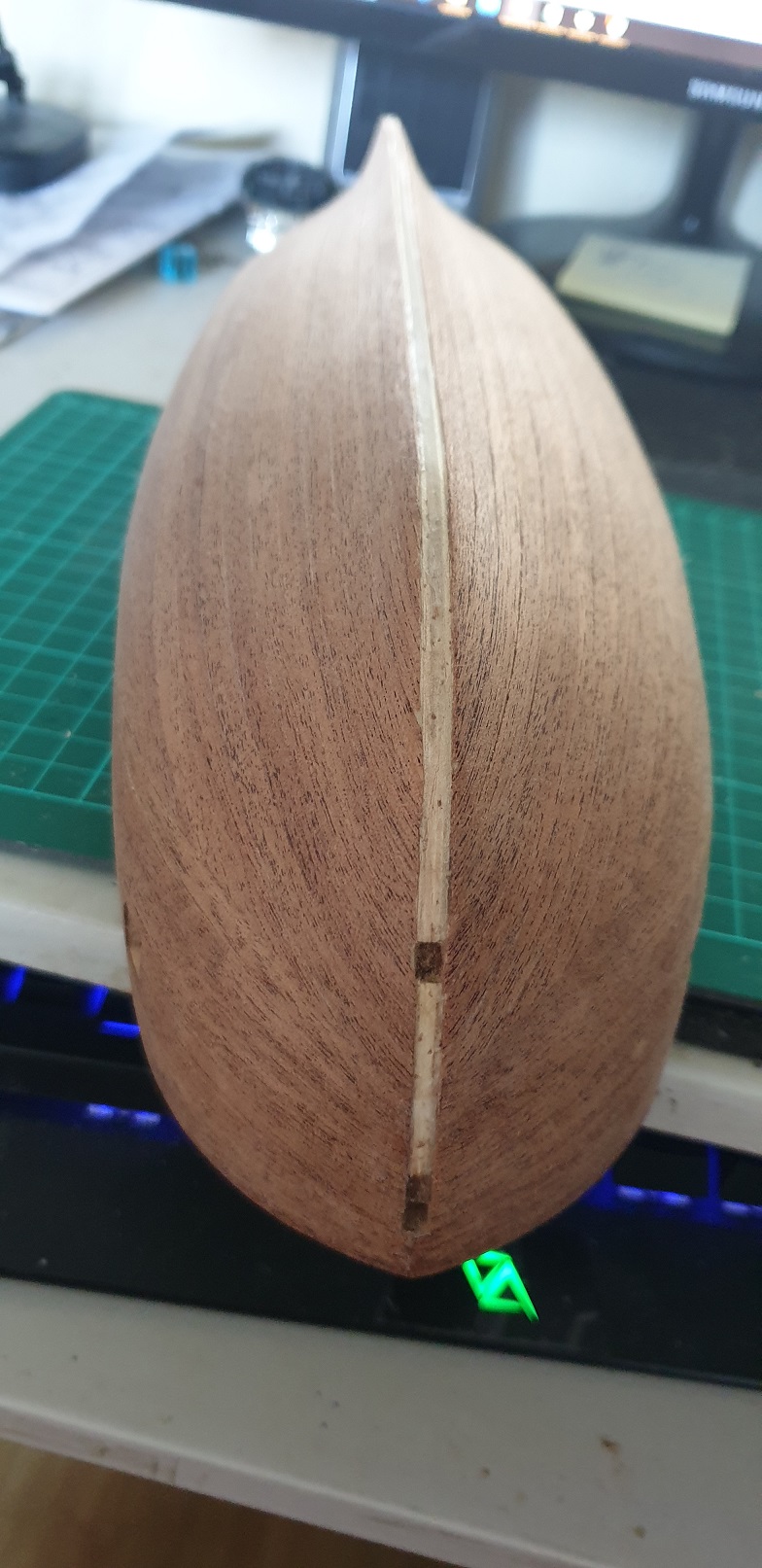 Gorzej z miejscem na stępkę za szeroko wyciąłem . Teraz już wiem jak się to wszystko pasuje mierzy i docina. Ale teraz trzeba też coś wymyślić bo tu akurat będą ewidentne szpary pomiędzy poszyciem a kilem.
