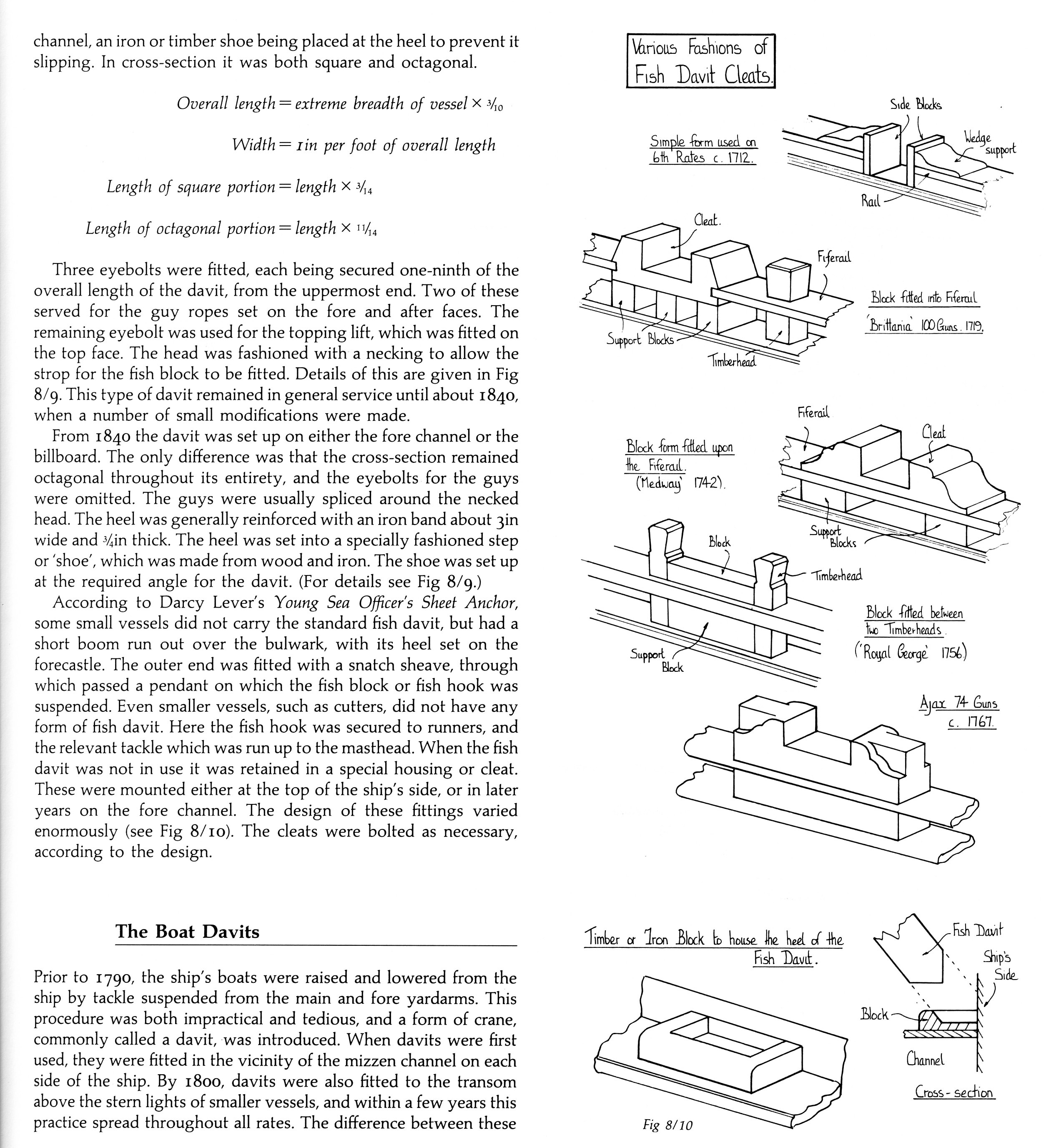 Oksal, wyjasniles to znakomicie, ze sam nie bylbym w stanie zrobic to lepiej! Belka ta nazywala sie w zargonie anglosaskim fish davit, w latach 1650-ok.1733 miala ona profil kwadratowy i jej dlugosc byla taka sama jak szerokosc kadluba na forkasztelu. Potem (rok 1733 i pozniej) byla ona krotsza i lzejsza - latwiejsza w obsludze. Dla przeciwleglej burty przeciagano ja na tamta strone, uwiazywano do pokladu i postepowano jw.