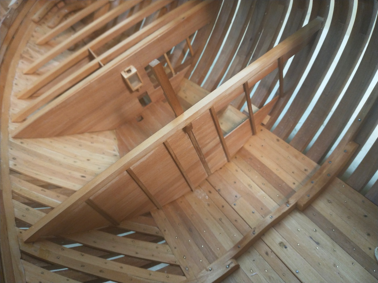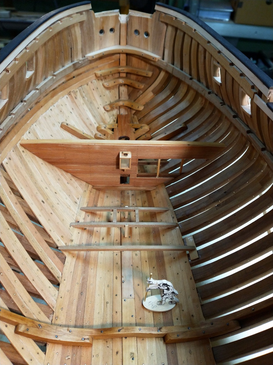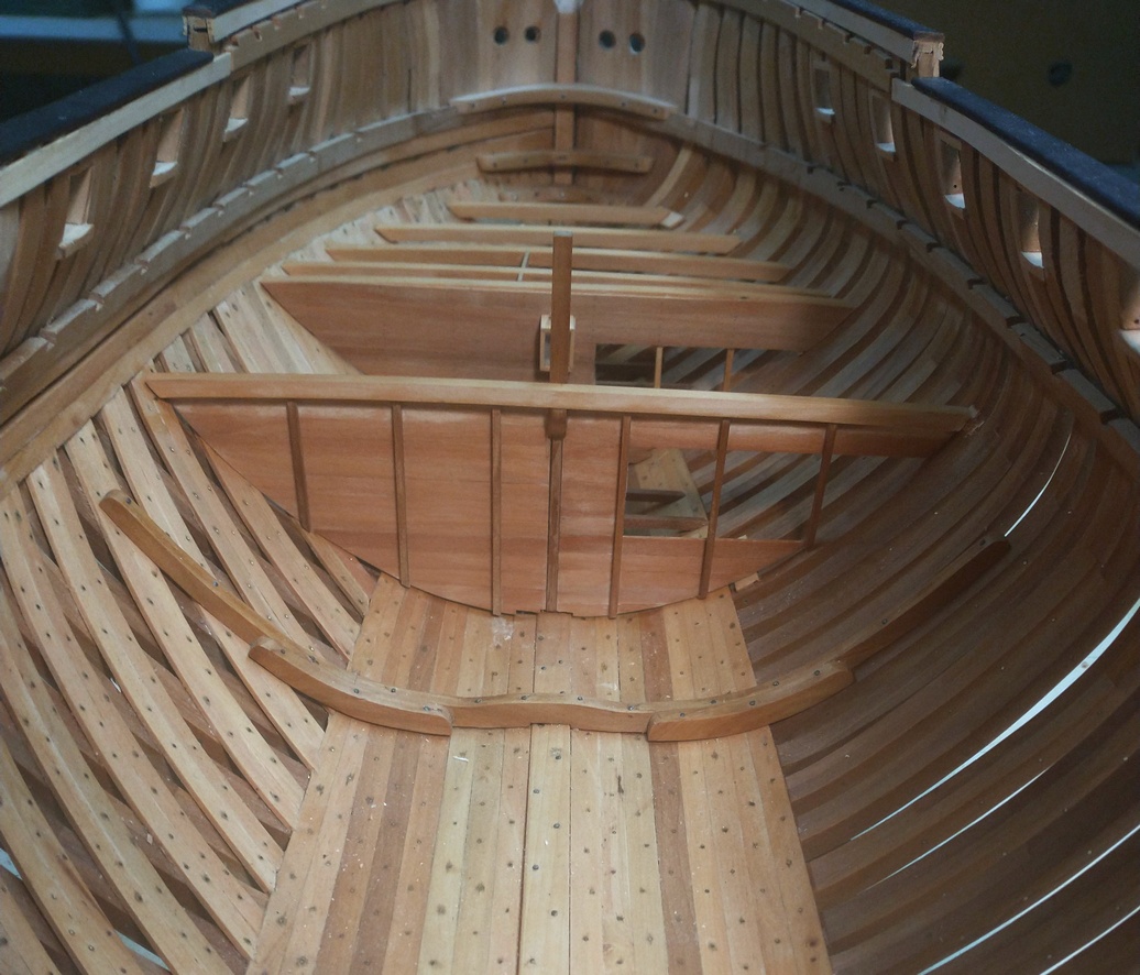 Pokleiłem dolny pokład i zacząłem prace nad pokładnikami głównego.