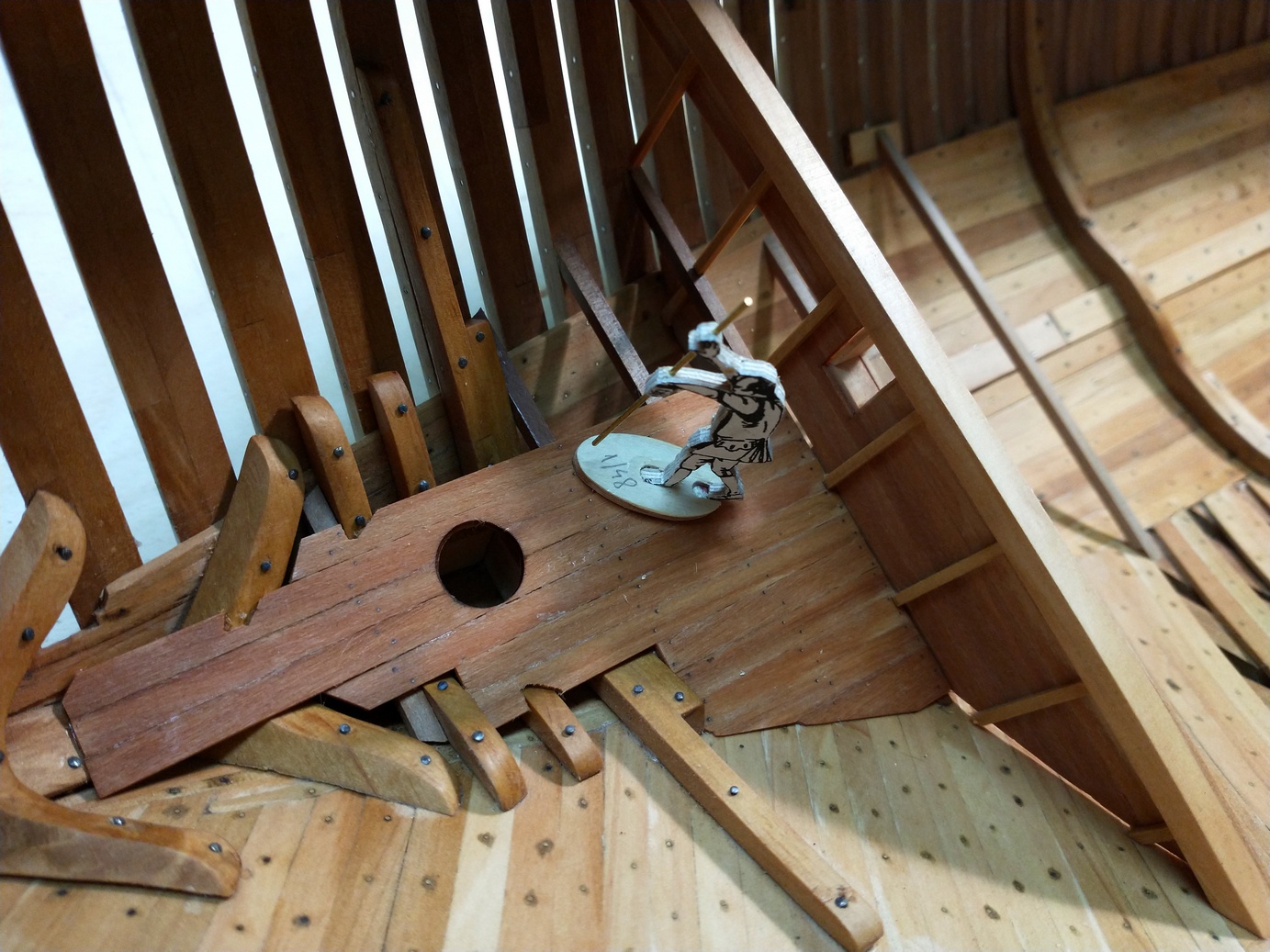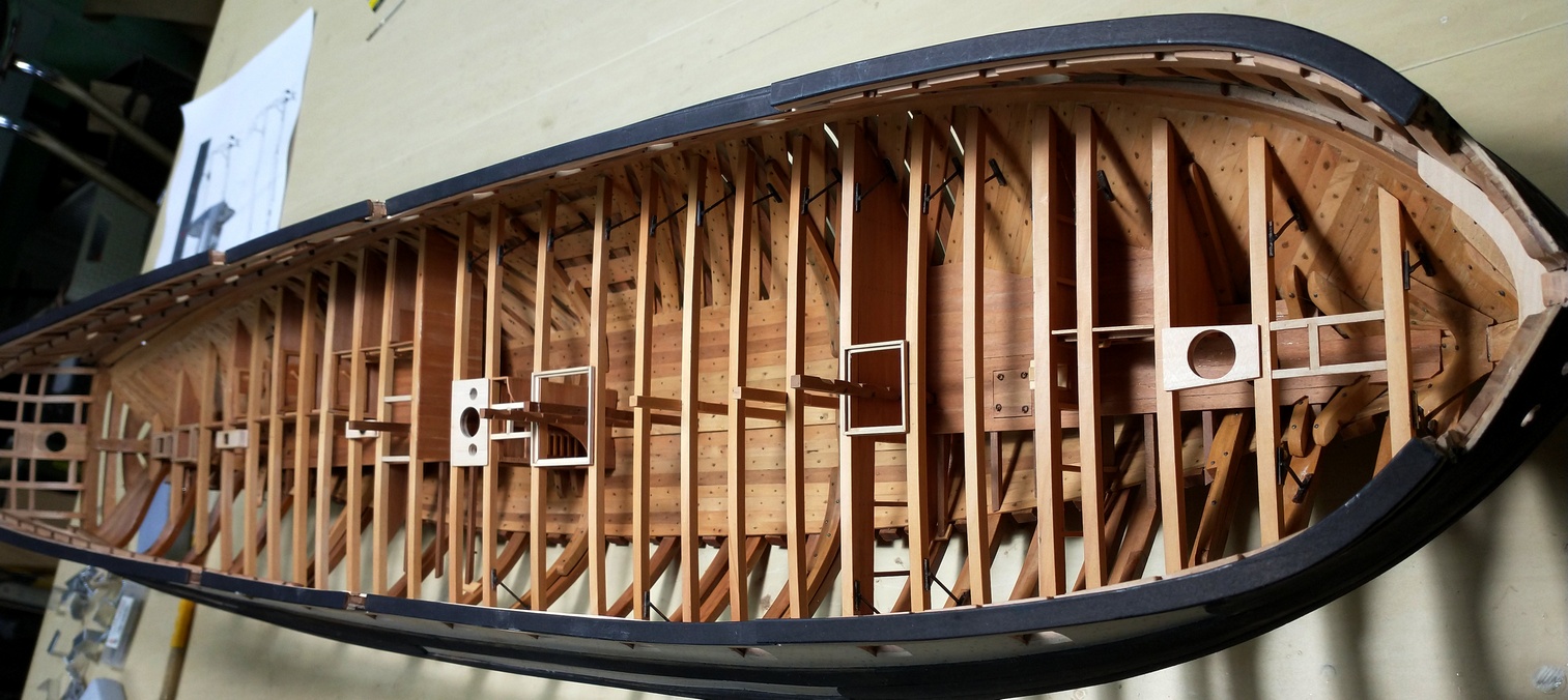 Pokładniki są umocowane na swoich pozycjach, ale oczywiście można je wyjąć. Samo wycięcie i dopasowanie kosztowało już sporo czasu, a to dopiero początek. Teraz trzeba wyciąć wszystkie wpusty, felce i otwory. zejdzie z miesiąc jak obszył. :) Ale i tak najtrudniejsze będzie wykonanie mosiężnych wzmocnień.