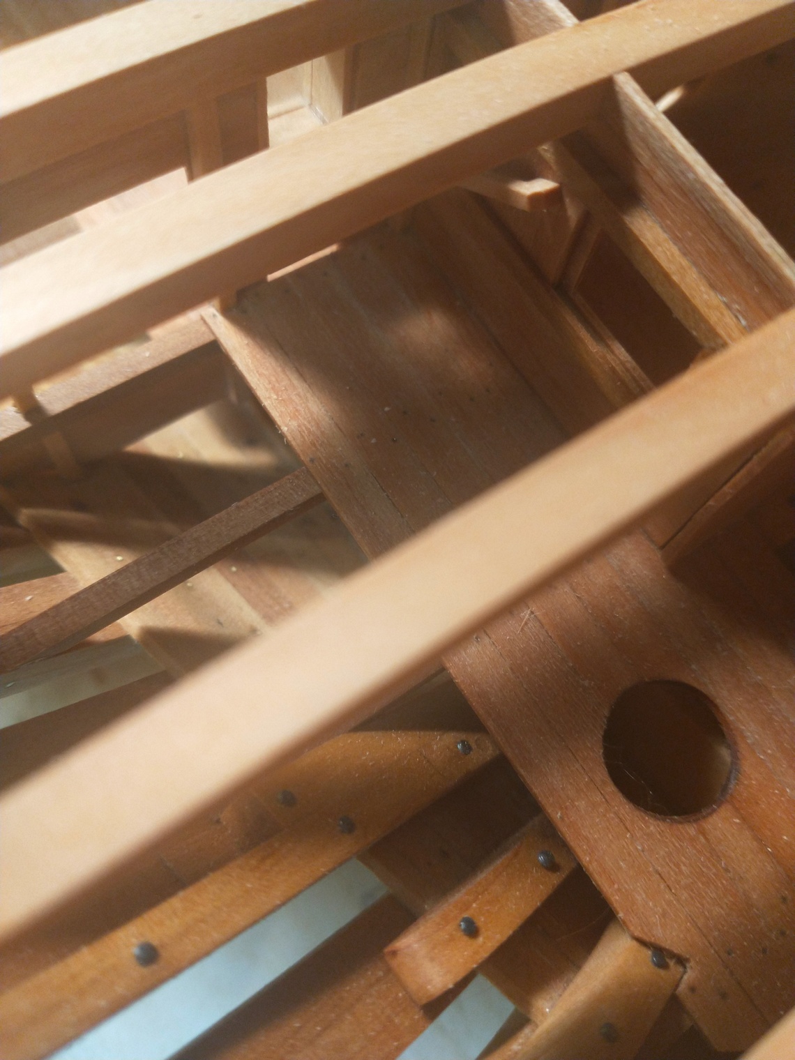 Wzmocnienia pokładników wklejone. Trudne było to zadanie, lepiej było by użyć do ich montażu gwoździ lub nitów, ale z racji braku miejsca, trzeba było je ordynarnie wkleić.
