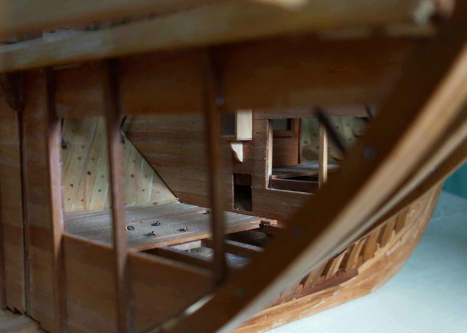 To już ostatnie ścianki pod pokładem. Sporo było przy nich pracy, ale to nie nowość. Już się przyzwyczaiłem, że każdy etap prac przy takim modelu, to maraton.