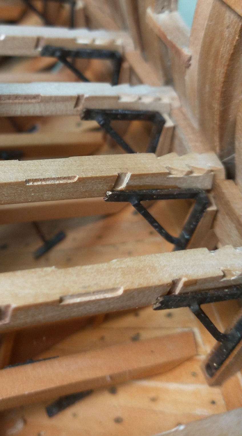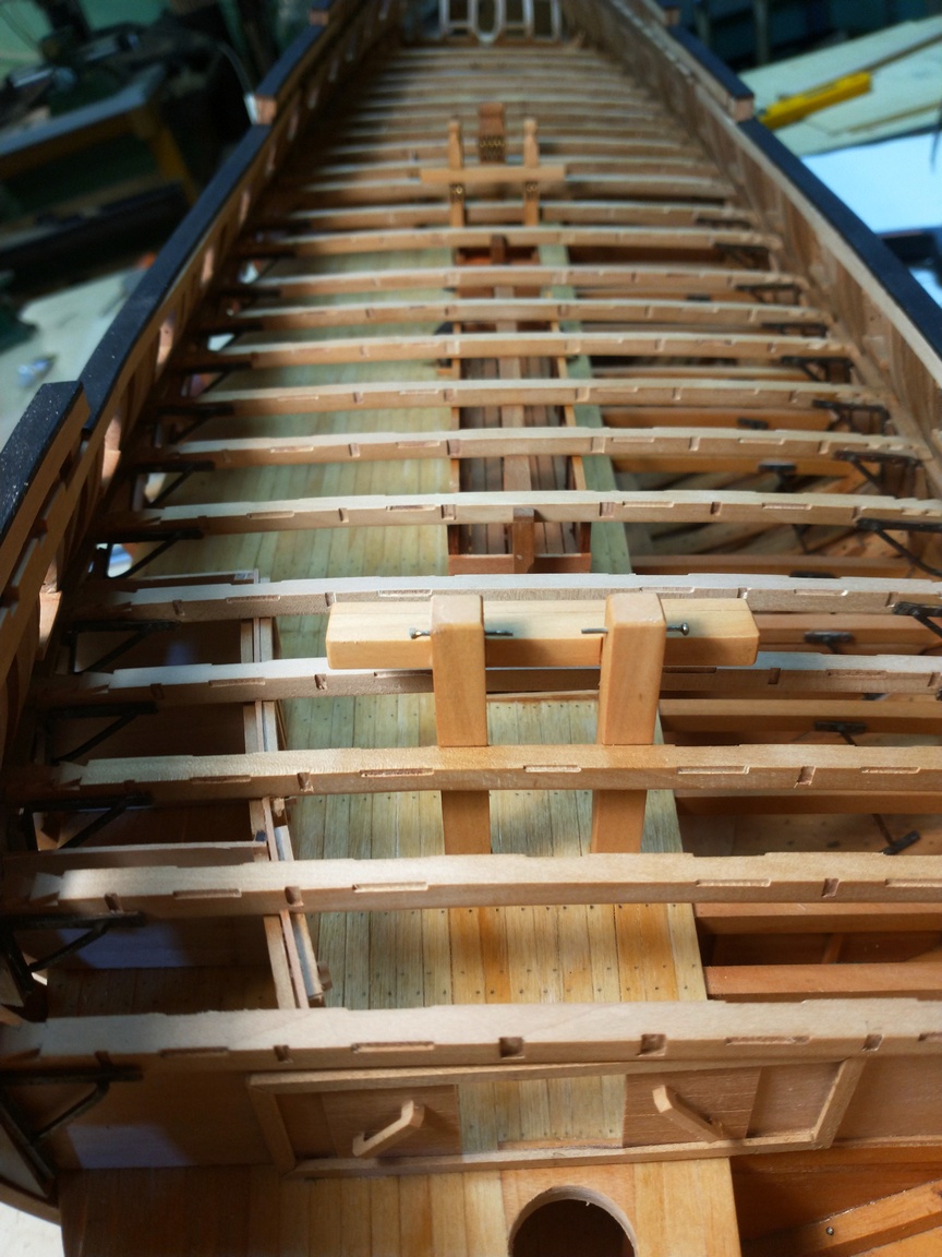 Wykonałem wycięcia w pokładnikach i trochę szczegółów wyposażenia dolnego pokładu.