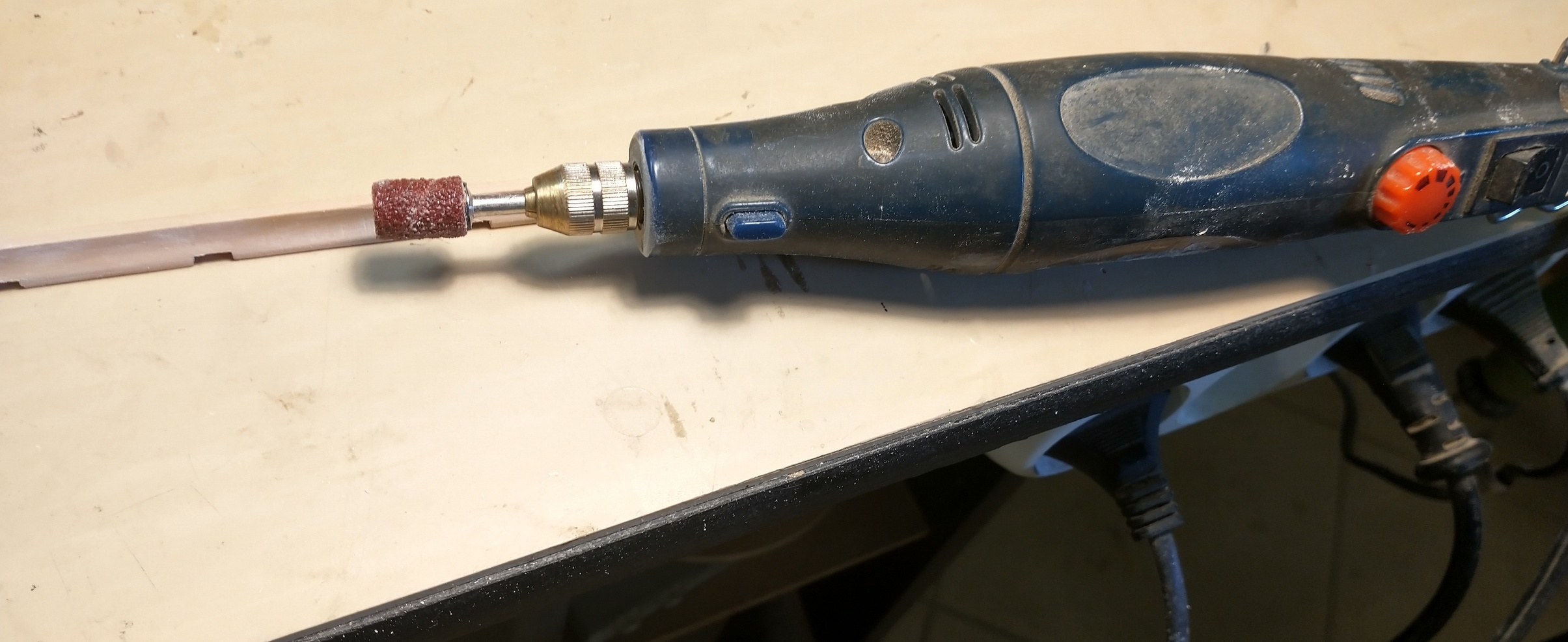 Do wyszlifowania łukowatego przekroju używam wałka ściernego i smukłej wiertarki. Później już ręcznie wygładzam resztę.
