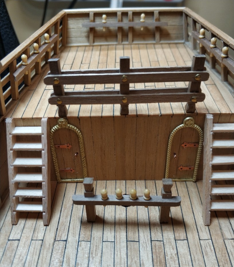 Pokład został pokryty klepkami oklejonymi czarnym papierem imitującym uszczelnienia:
