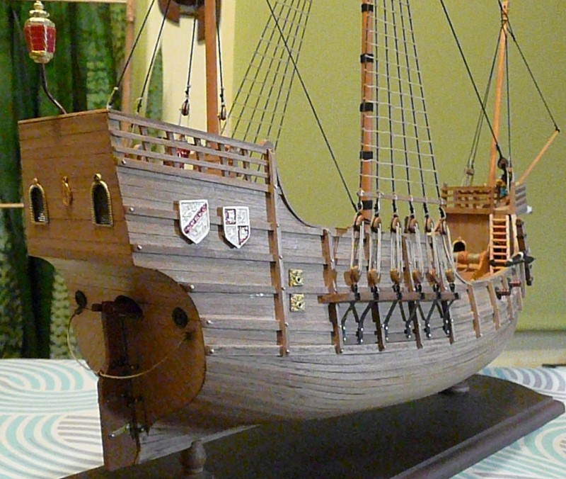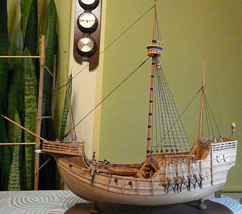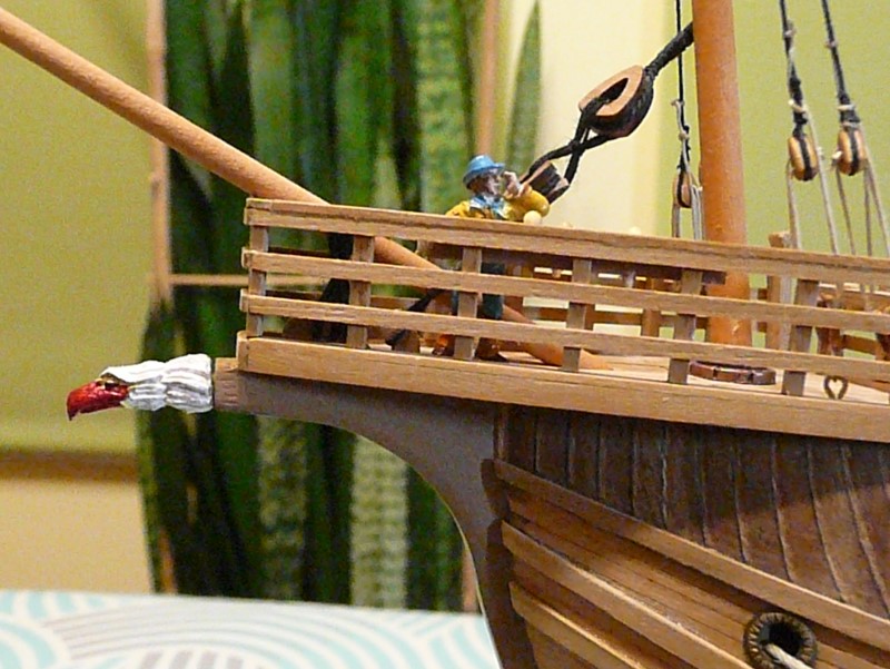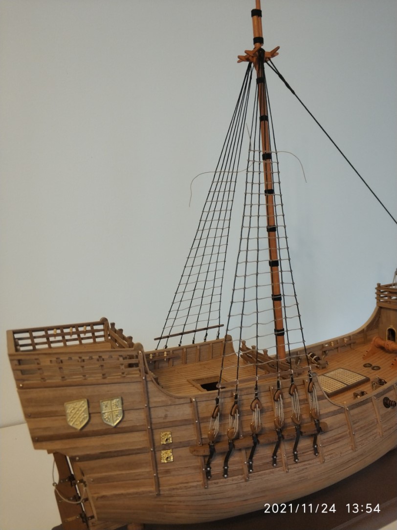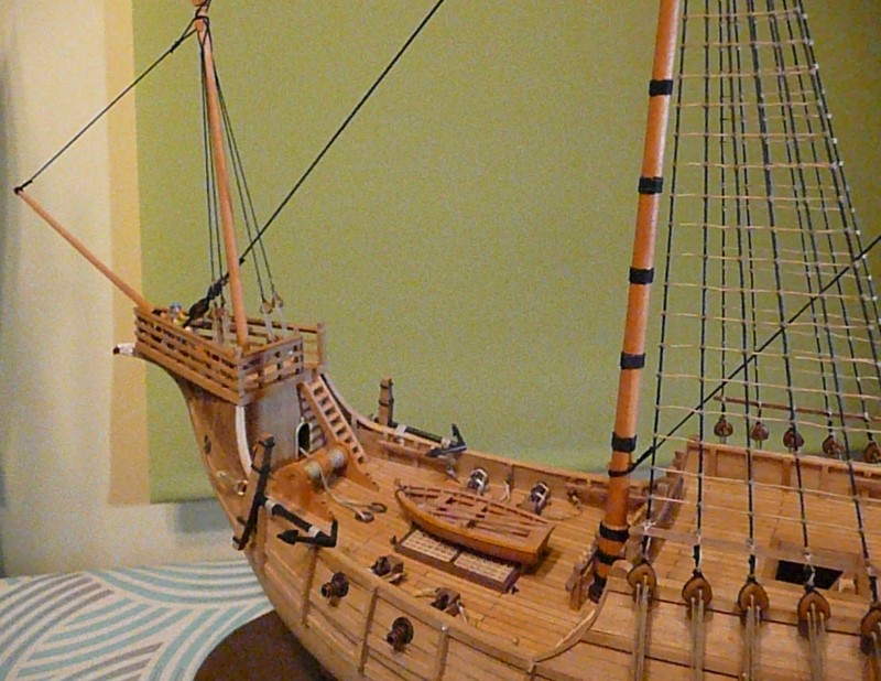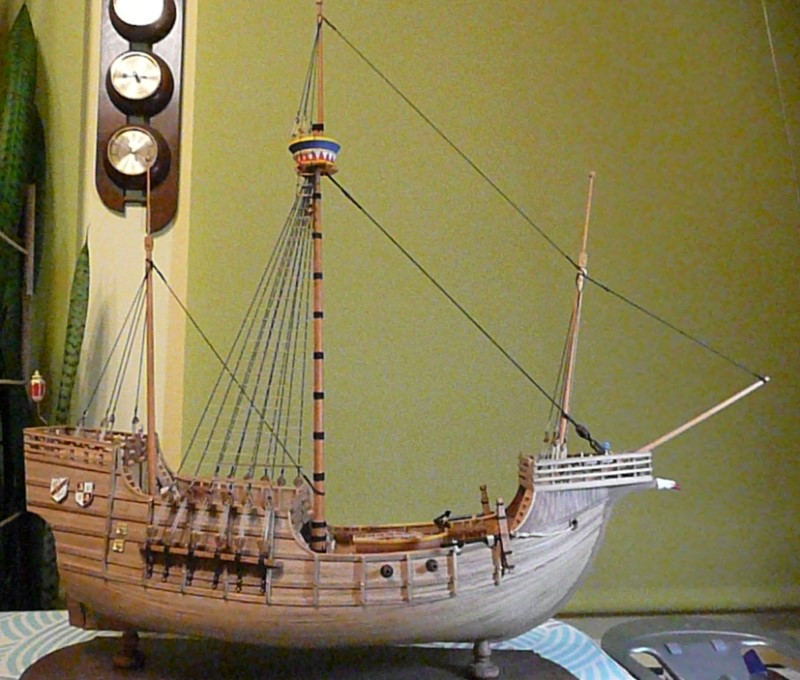 Po podmalowaniu tarcz herbowych i figury dziobowej (lakier do paznokci - dziękuję szwagierce, akryl sie nie trzyma) Santa Maria jest gotowa do ożaglowania.