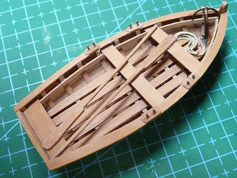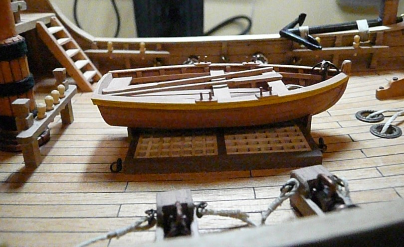 Chciałem porzucić czarny humor i wrócić do budowy szalupy, ale niechcący zajrzałem do "Historic Ship Models" Wolframa zu Mondfelda. Tu czytam: "Budowa łodzi jest najbardziej złożonym i najbardziej irytującym zadaniem w trakcie budowy modelu statku. Tak więc nie rozpaczaj jeśli Twoja pierwsza próba nie będzie tym czego oczekiwałeś. Druga próba, a nawet trzecia, też noże skończyć się porażką. Budowa łodzi wymaga czasu, cierpliwości, doświadczenia i praktyki. A tak przy okazji, mogę Ci oszczędzić wizyty w sklepach modelarskich, ponieważ ich oferta łodzi nadaje się do wyrzucenia do kosza na śmieci. Jedynym powodem aby tego nie zrobić może być ich wysoka cena." Czy to nie brzmi jak czarny humor?