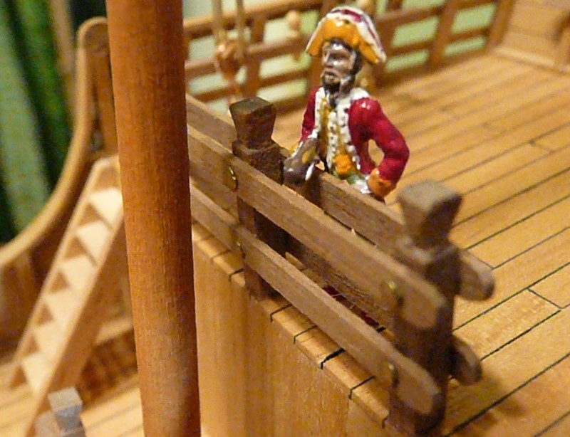 Wykonanie otworu w dnie gniazda, wymagałoby usunięcia znacznej części dna. A na czym marynarz będzie stał? Rozwiązanie znalazłem w planach z "Modelarstwa Okrętowego"