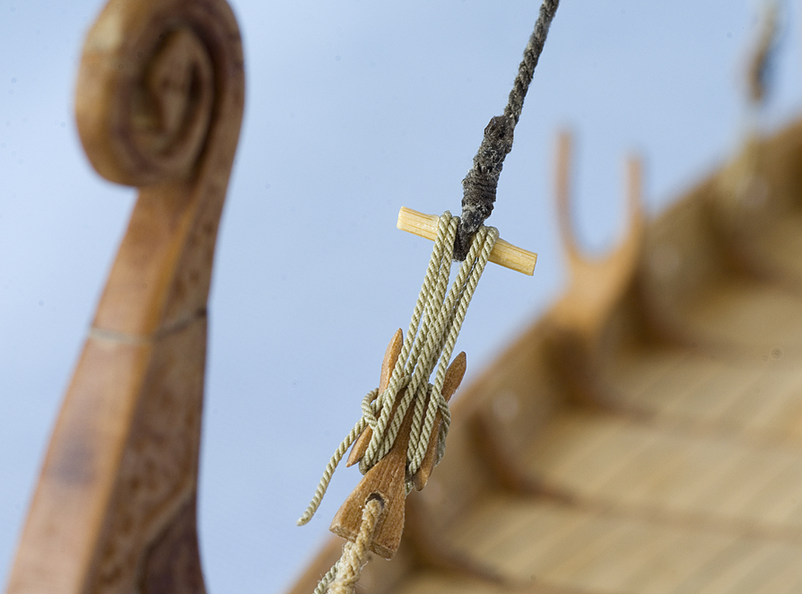 Kolejne duperele, które trza było wyrzeźbić to ściągacze. Ściągacze sztagu i achtersztagu to takie rogate cóś. Początkowo próbowałem wszystko wypiłować raszpelkami, ale nie wychodziło zbytnio. Więc zaangażowałem elektronarzędzia: najcięższy pręcik oklejony glaspapierem i najmniejszą tarczkę-piłę zębatą.