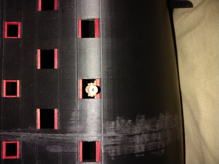 Trochę minęło od od ostatniej aktualizacji. Prace posunęły się lekko do przodu. Doszedłem do wniosku,że szkoda marnować dekoracji z druku 3d na pierwszy model ten zostanie jako anonimowa 118-ka. W drugim powinno być mniej błędów. Pewnie już na tym etapie można ich sporo wyłapać, ale mi się podoba. Na razie nie napotkałem jeszcze na jakiś element nad którym by mnie mocno zatrzymał. Obklejona jest tylko jedna burta- chciałem zobaczyć na co mogę się natknąć co będzie problematyczne i nie popełniać tych samych błędów na drugiej stronie.
