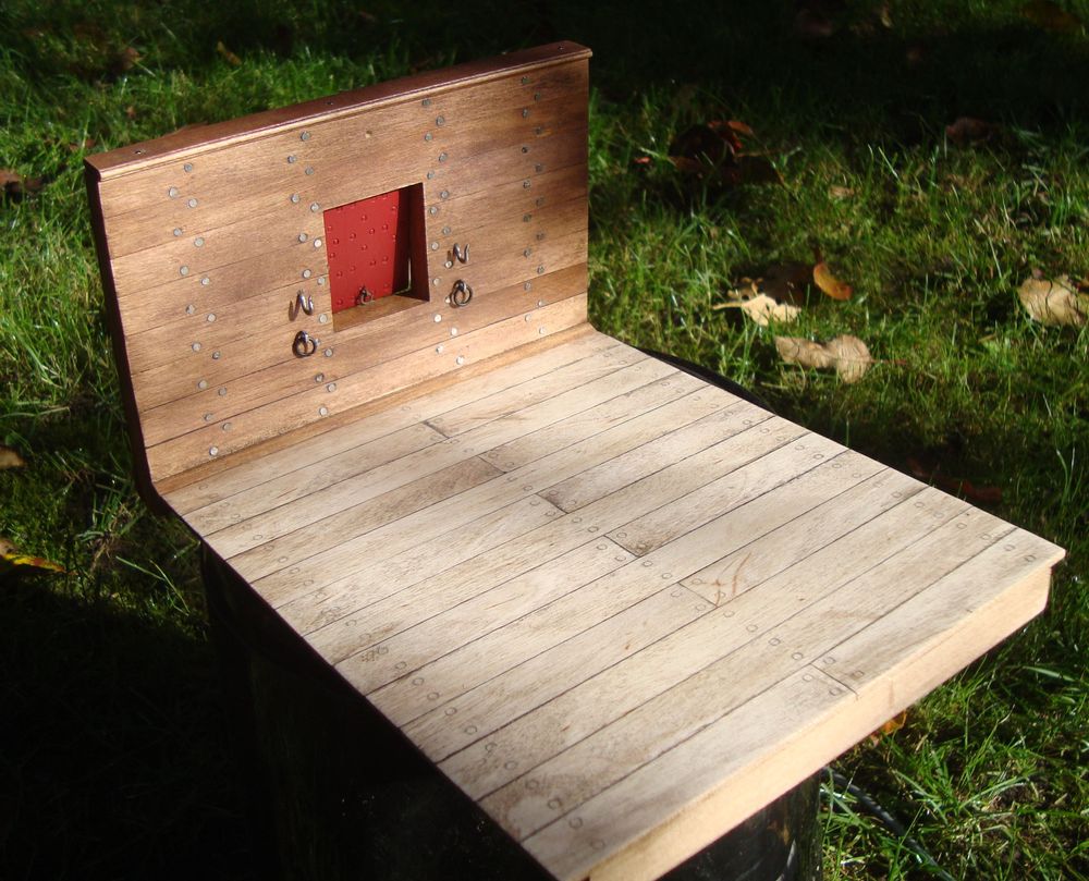https://www.360cities.net/image/lower-g ... th-englandryszardw pisze: ↑28 paź 2022, 17:52 jest armata to i będzie stanowisko artyleryjskie .Zdecydowałem się na wycinek z Royal Katherine której model wykonałem .Stanowisko będzie w skali 1:15 .Na razie wykonałem wycinek pokładu .Teraz pracuję nad rzeźbami i wyposażeniem .Nigdzie nie natrafiłem na informację gdzie składowano osprzęt ,wyciory szufle itd Czy wisiały nad otworem armatnim na specjalnych uchwytach czy znajdowały się w pomieszczeniach pod pokładem .Może ktoś natrafił na taką informację .Pozdr.R