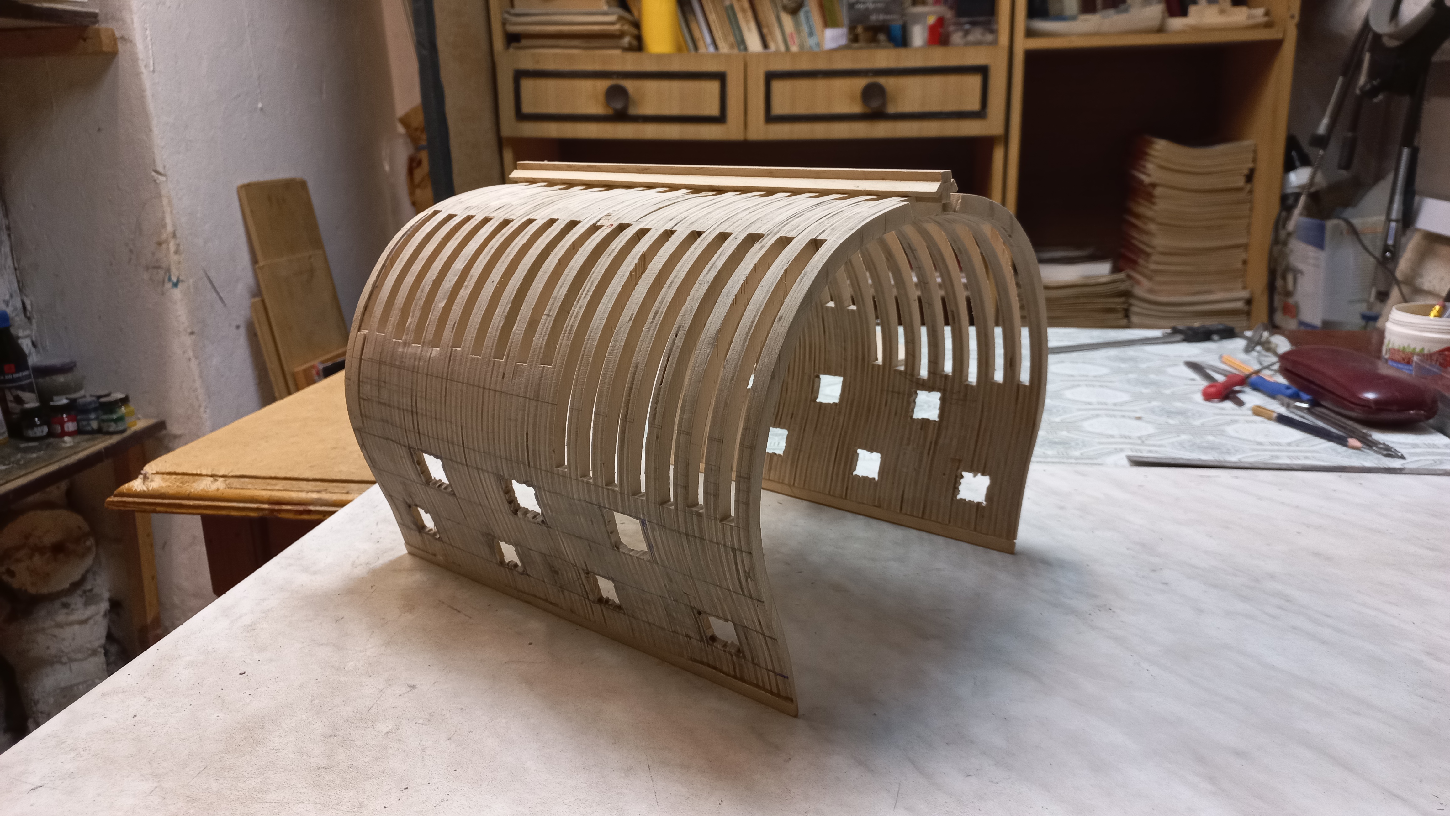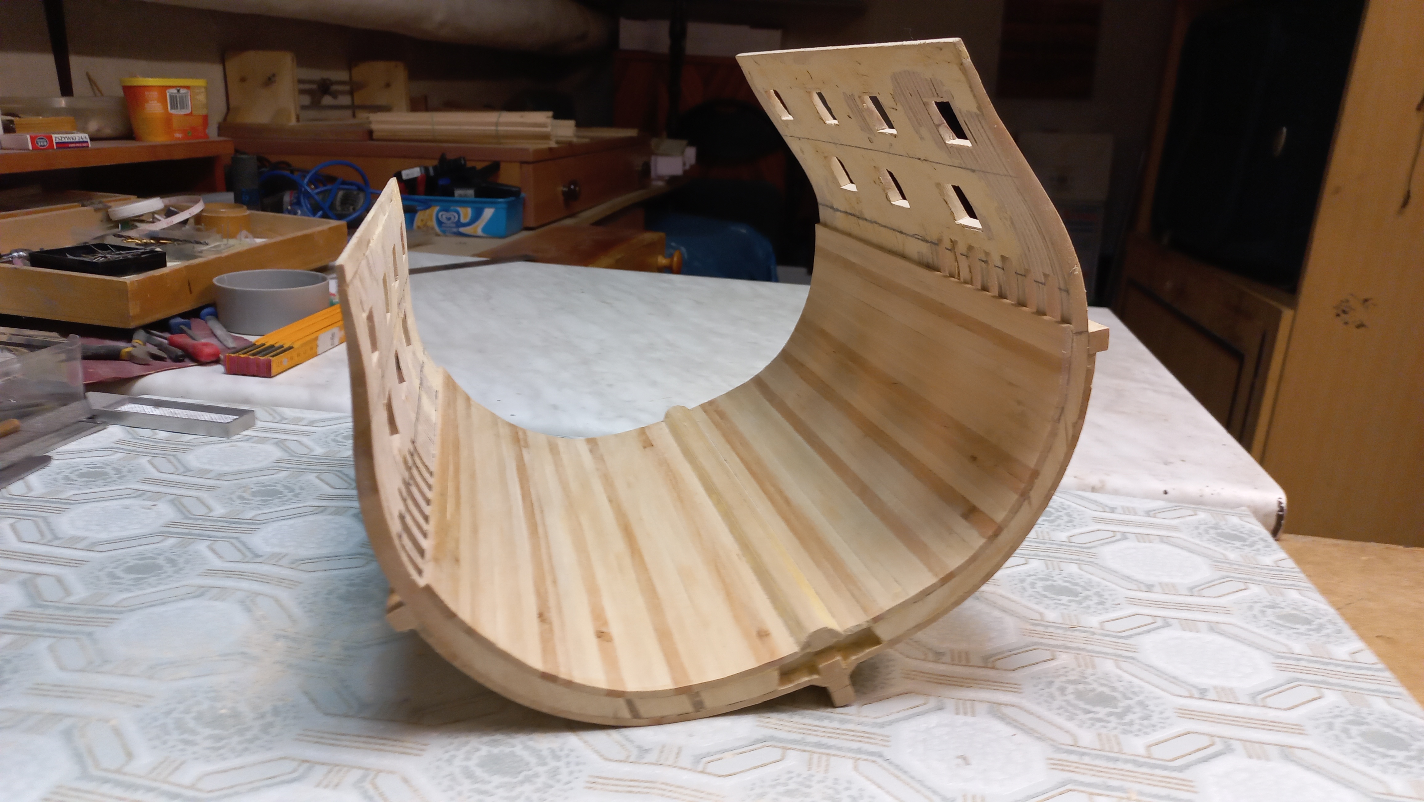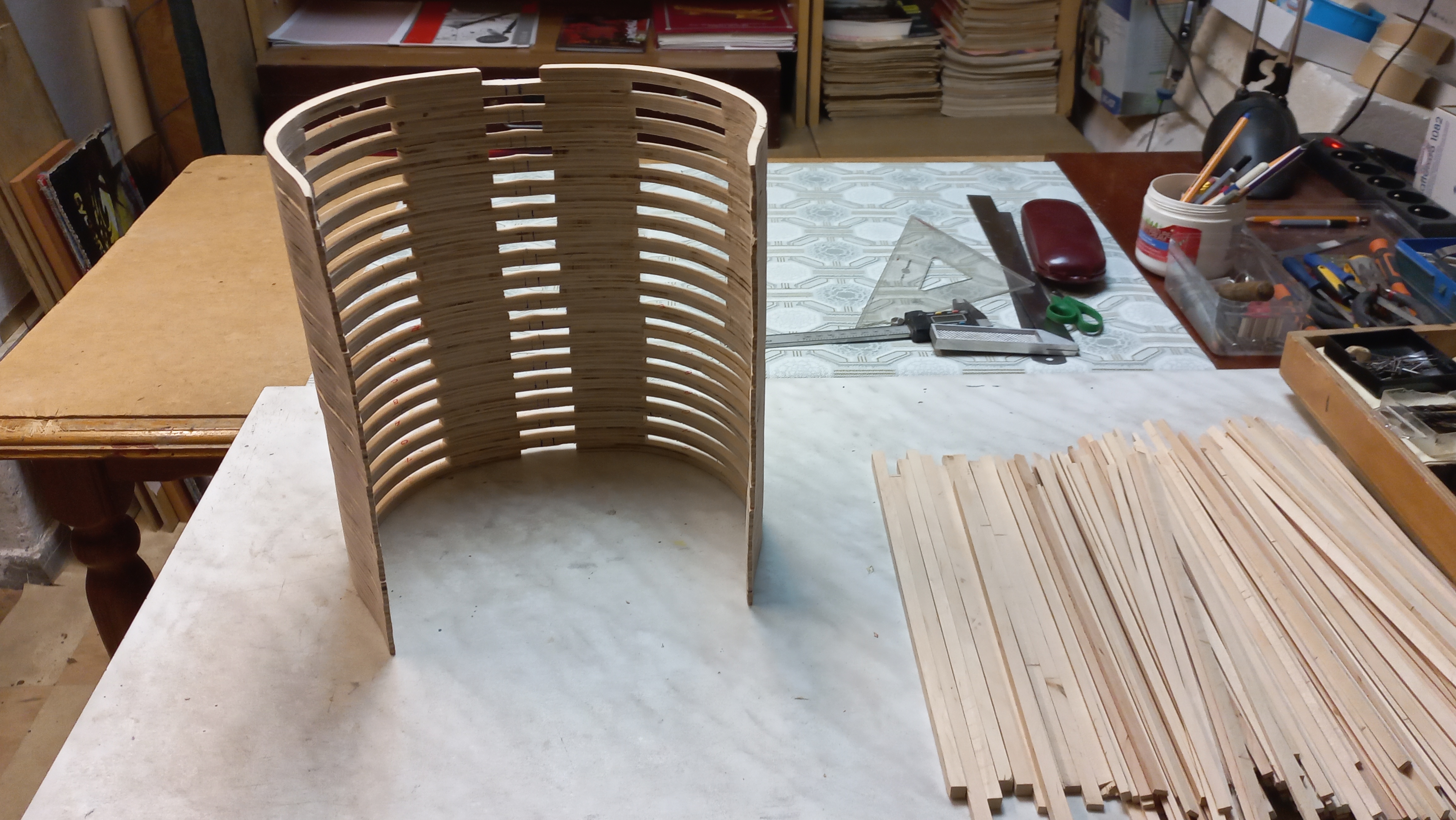 Podczas budowy Suska zostały mi nietrafione wręgi śródokręcia.Postanowiłem je zagospodarować i pobawić się z sekcją.Po niezbędnych poprawkach wyszedł materiał wyjściowy do budowy.Jak wyjdzie i co wyjdzie zobaczymy.Nie kieruję się konkretnym planem a przykładami z innych podobnych budów.Narazie kończę skorupę.A wnętrze to będzie czysta fantazja. ;)