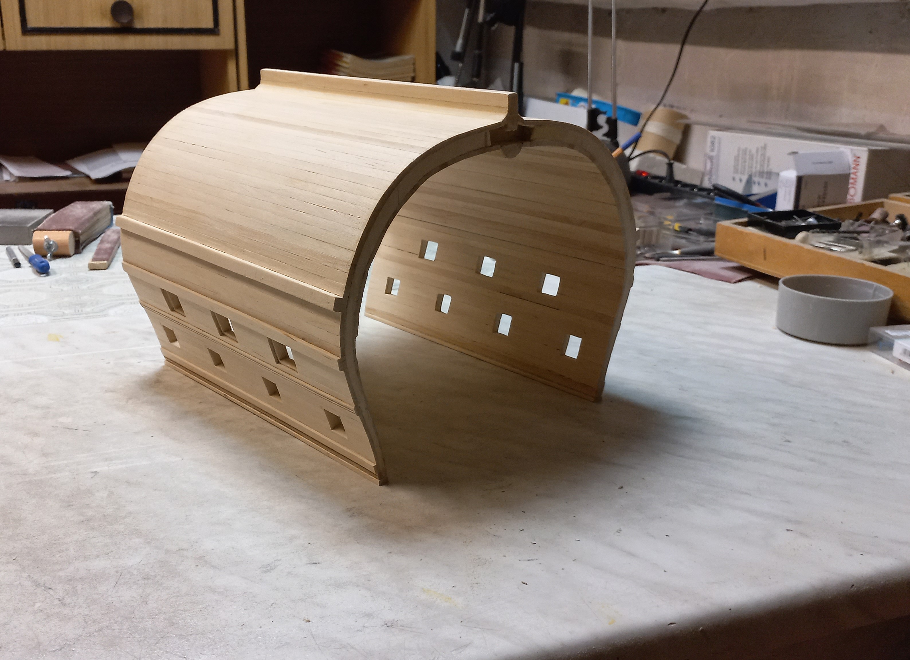 Skorupa ukończona,no prawie.Teraz żmudna robota wykończeniowa z detalami.Ryszard,uzbrojenie będzie.Jeszcze się zastanawiam czy armaty będą w lukach do strzału czy zamknięte.Dzięki za zainteresowanie.Pozdrawiam.