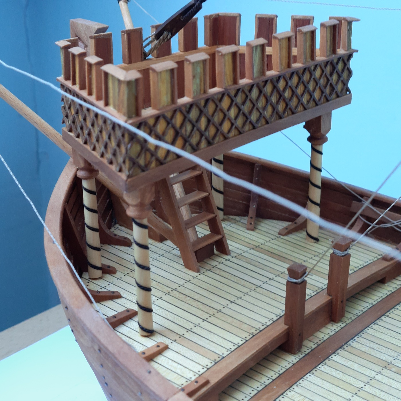 Kasztele, zarówno dziobowy jak i rufowy są obowiązkowe i będą wykonane jako osadzone na czterech kolumnach. Otwory do mocowania tych kolumn są już już nawiercone w pokładzie. Poza kasztelami na maszcie jest bocianie gniazdo służące zarówno do obserwacji jak stanowisko dla kusznika.
