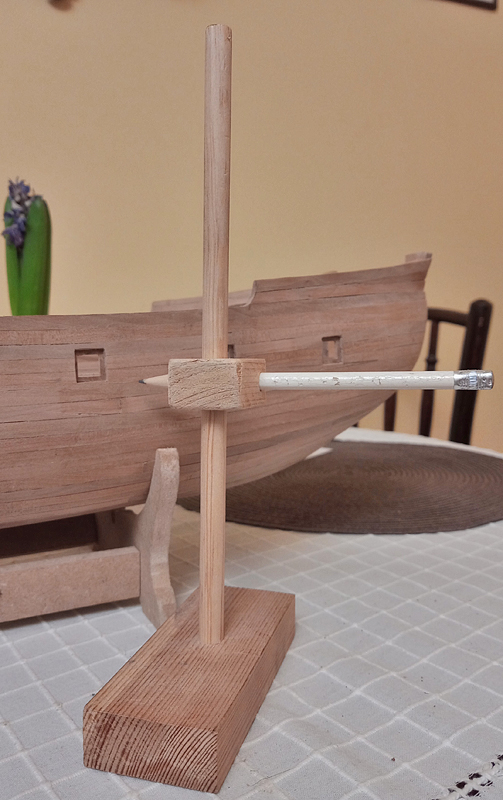 No cóż.. Jak już zacząłem relację, to wypadałoby raz po raz raportować, co tam z modelikiem się dzieje. No to dziś trochę o zabawie z ambrazurami. Najpierw korzystając z takiej samoróbki-pomocy naukowej, wykreśliłem linie wyznaczające poziom tych dziur.