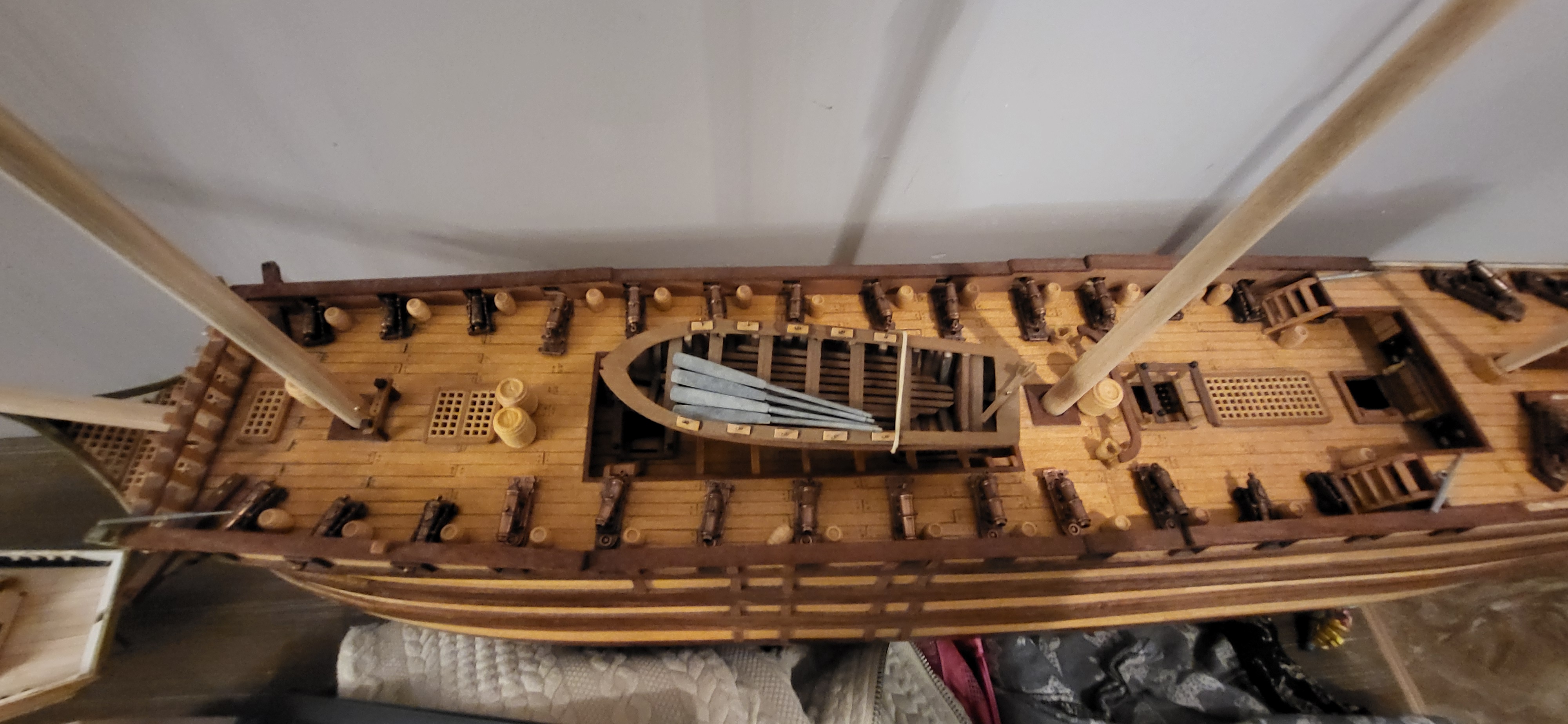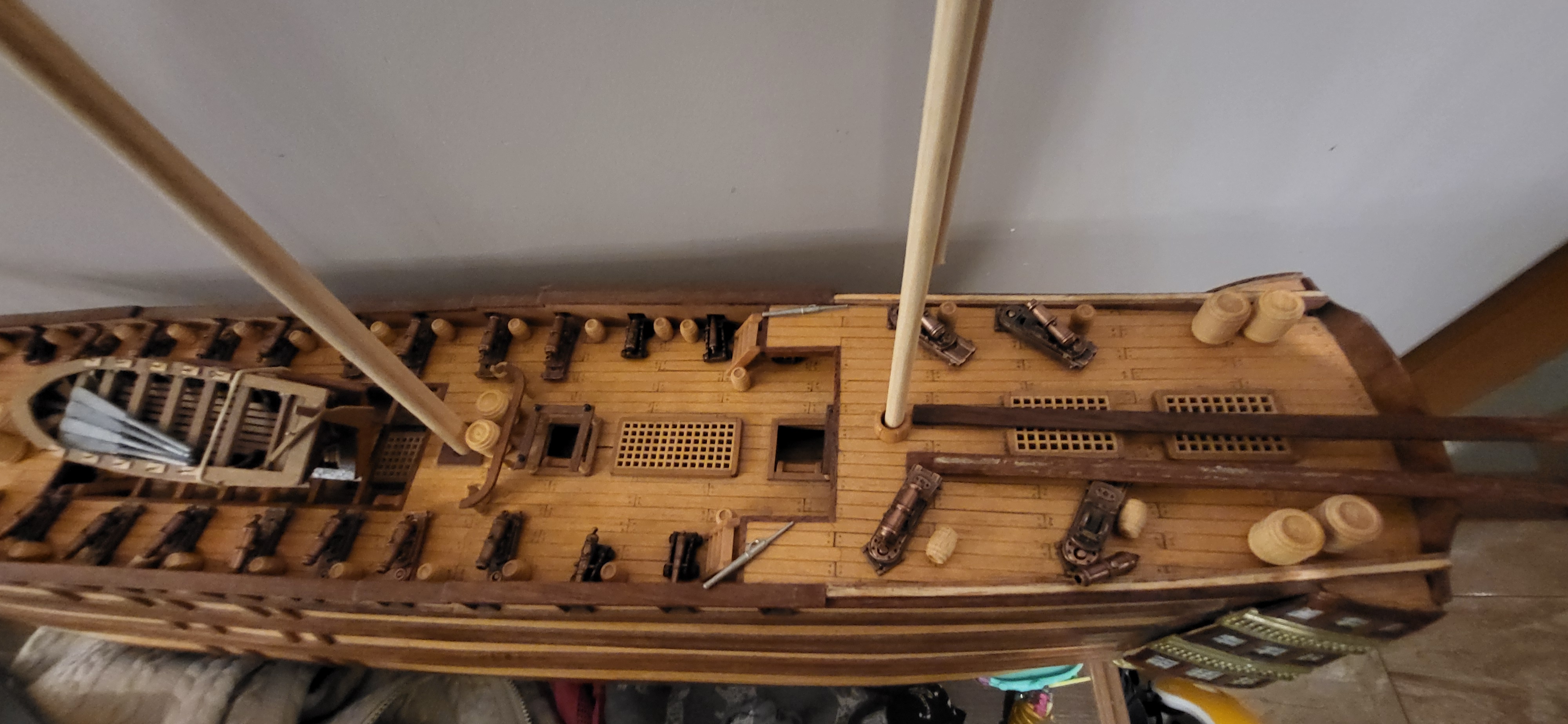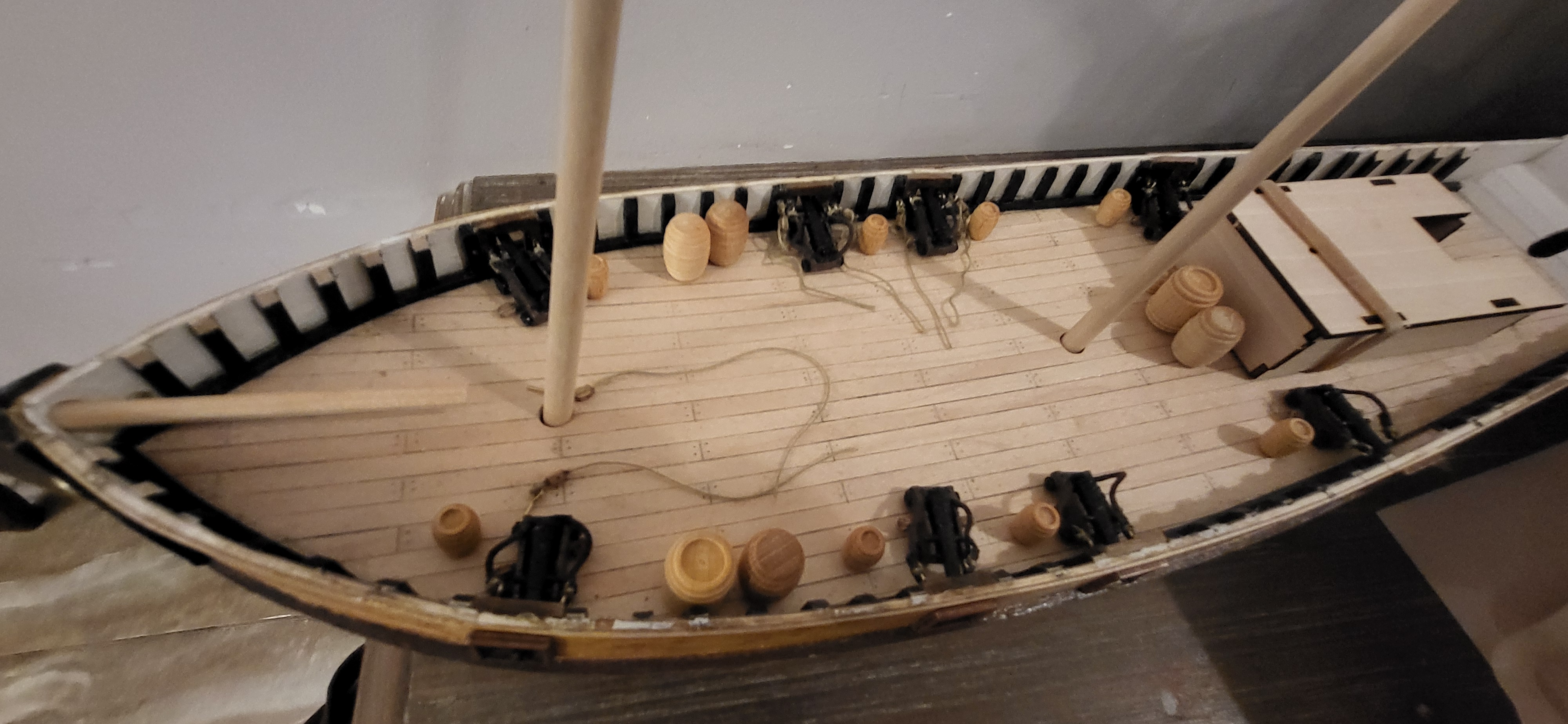 Zawalili mnie w robocie, że nawet stóp nie widać, wracam jak krasnalud z kopalnii ale już niedługo zerwę kajdany :lol: poniżej zdjęcia obecnego etapu polaris i niespodzianka na Santasima na jednym ze zdjęć widać Esmeril hiszpańską armatkę- ściągnąłem z Czech 8-) caronady też widać wszystko w oparciu o literature i wątek który założyłem na tym forum. Santisimę przerobie na 1805 rok trafalgar jestem już uzbrojony w materiały z internetu i nie zawacham się ich użyć, ale nadal trenuje na polaris 8-) jeszcze trochę treningu :?