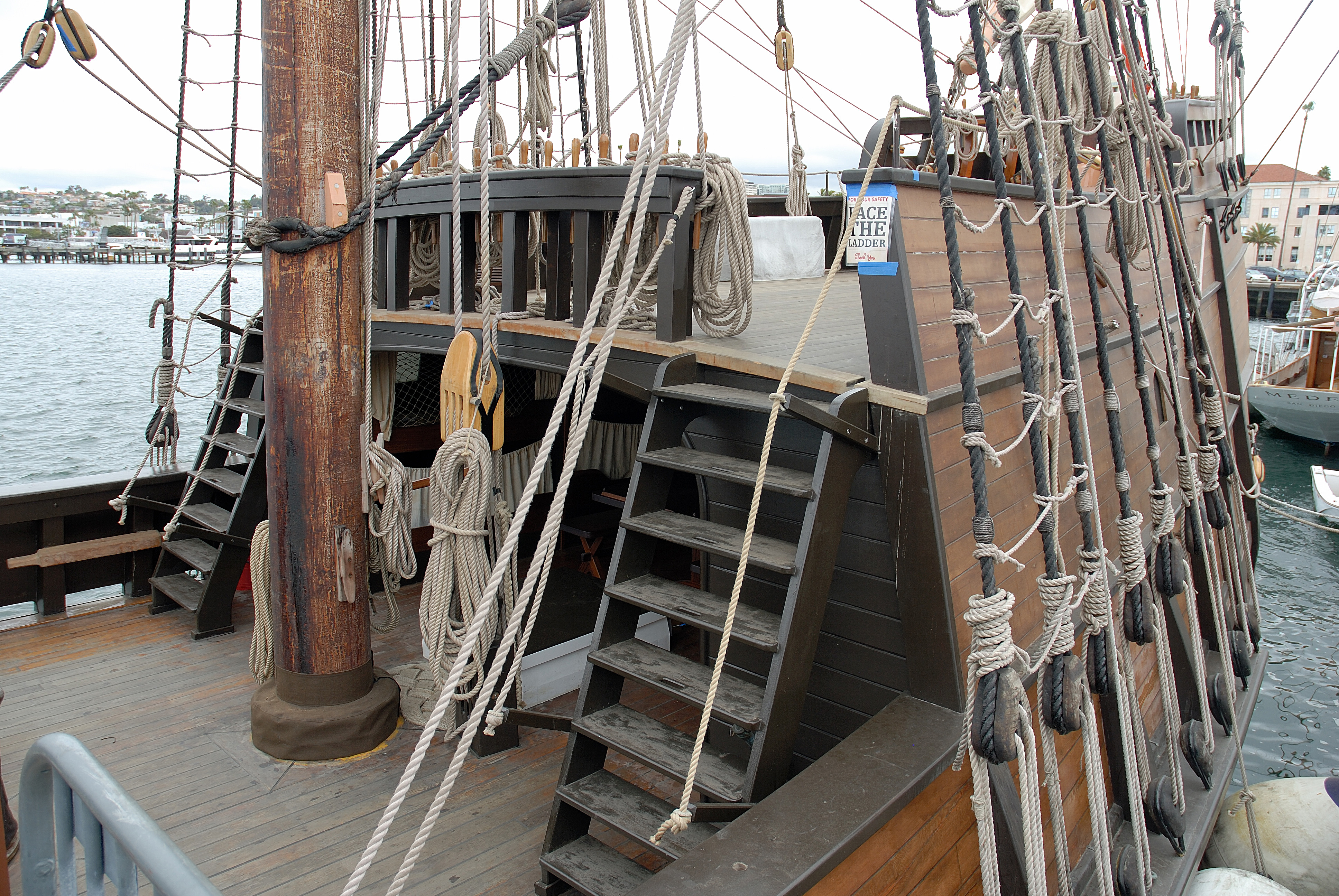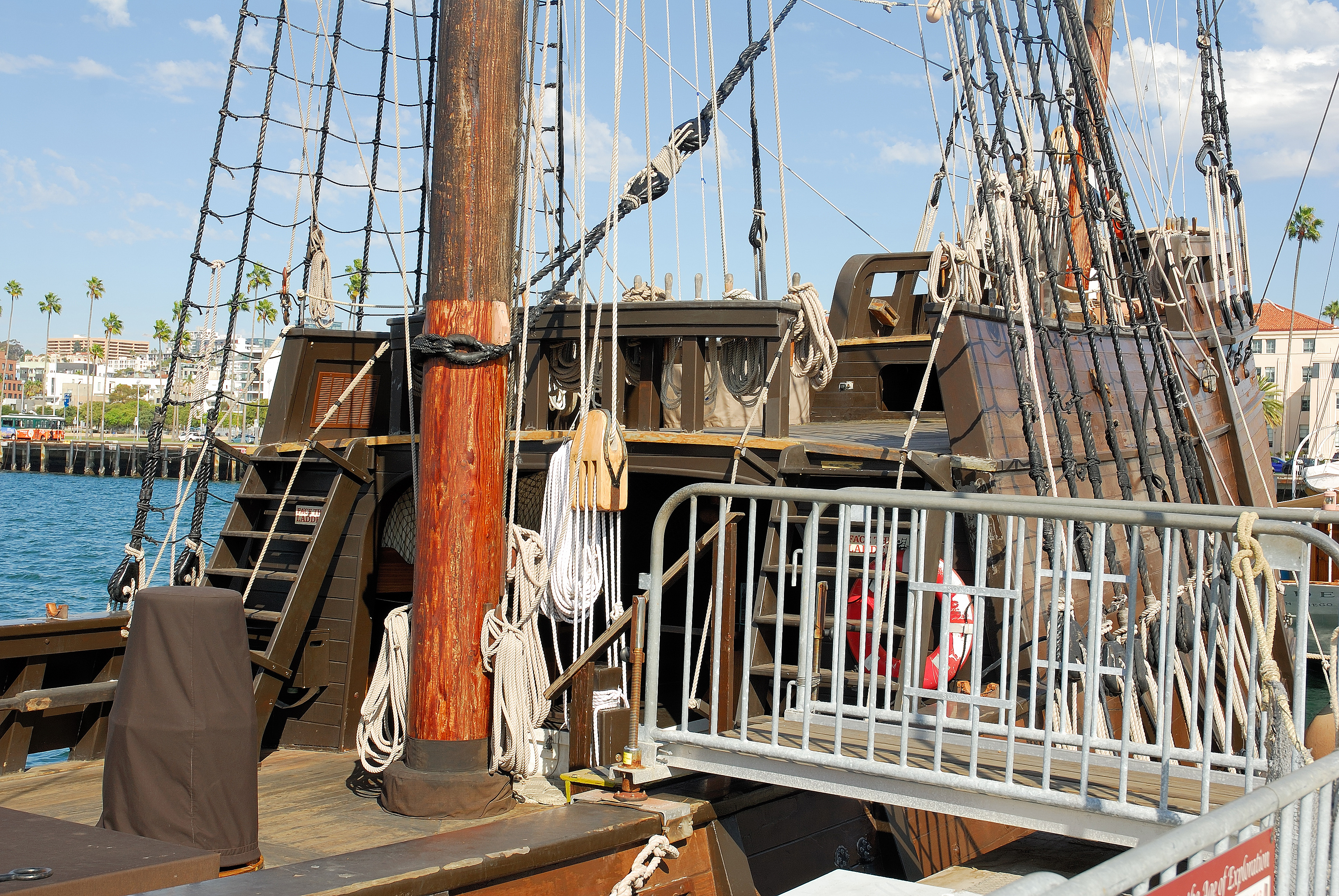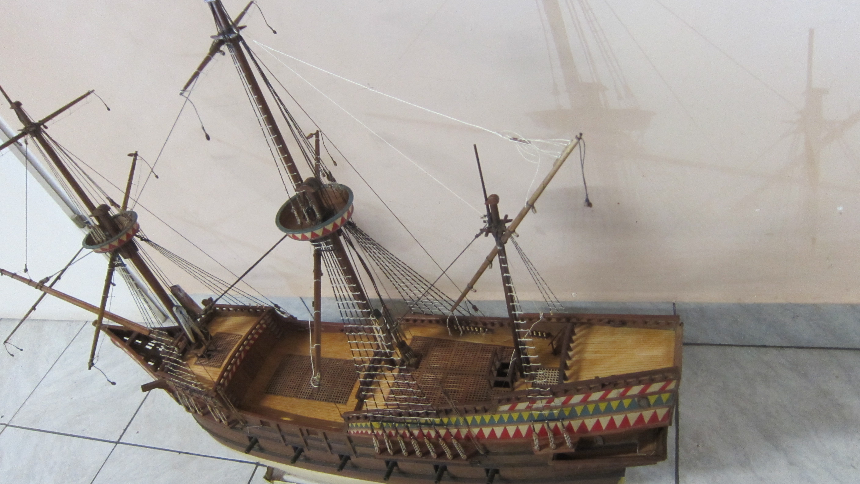 Nie posiadam jakichs lepszych planow Twego galeonu (Wodnik?), by to sprawdzic, ale mam troche zdjec wspolczesnej repliki zaglowca, hiszpanskiego galeona, na ktorym plywal niejaki Juan Rodriguez Cabrillo - Portugalczyk w sluzbie Hiszpanii w 2giej polowie XVI wieku, o nazwie "San Salvador", ktory zwiedzalem kilkakroc. Dzis ta replika jest czescia muzeum marynistycznego w San Diego.