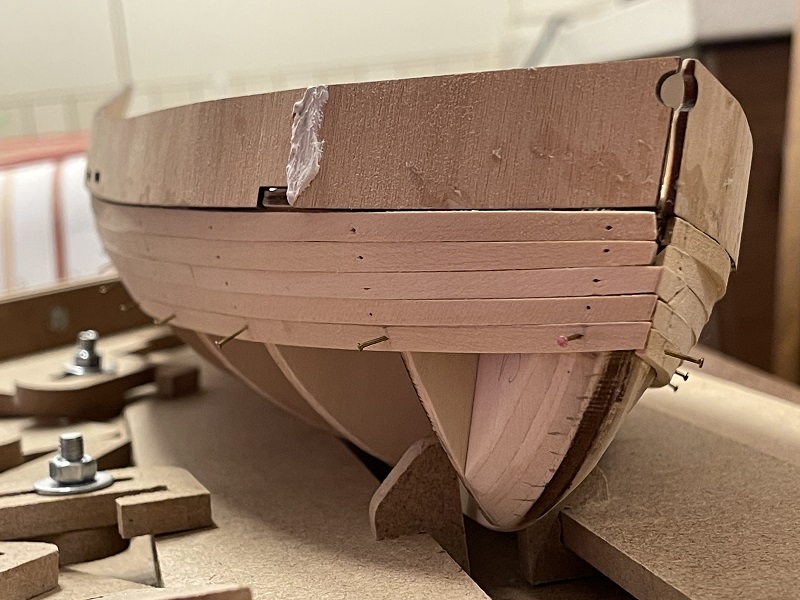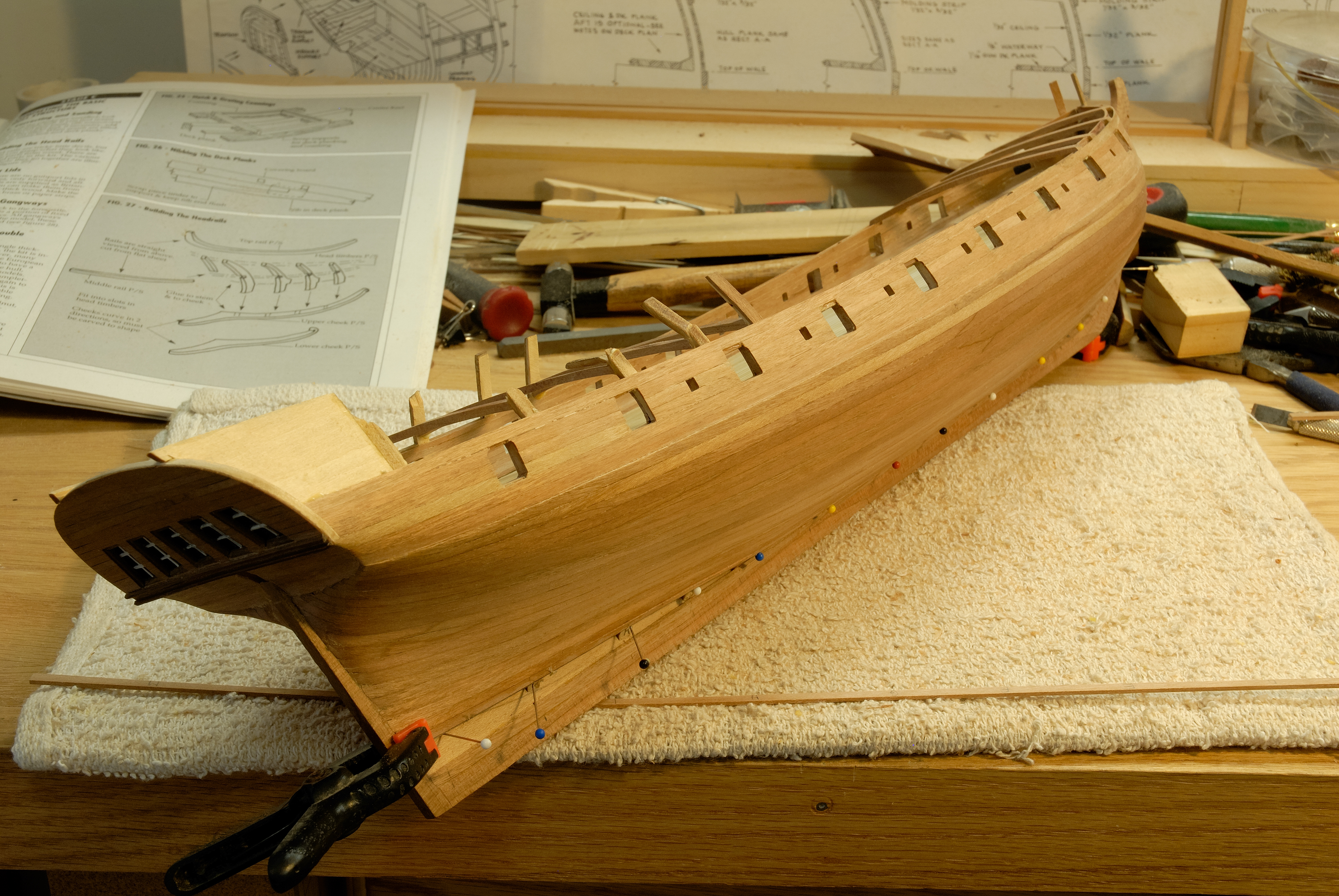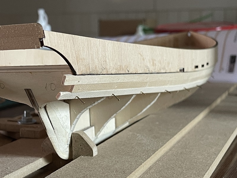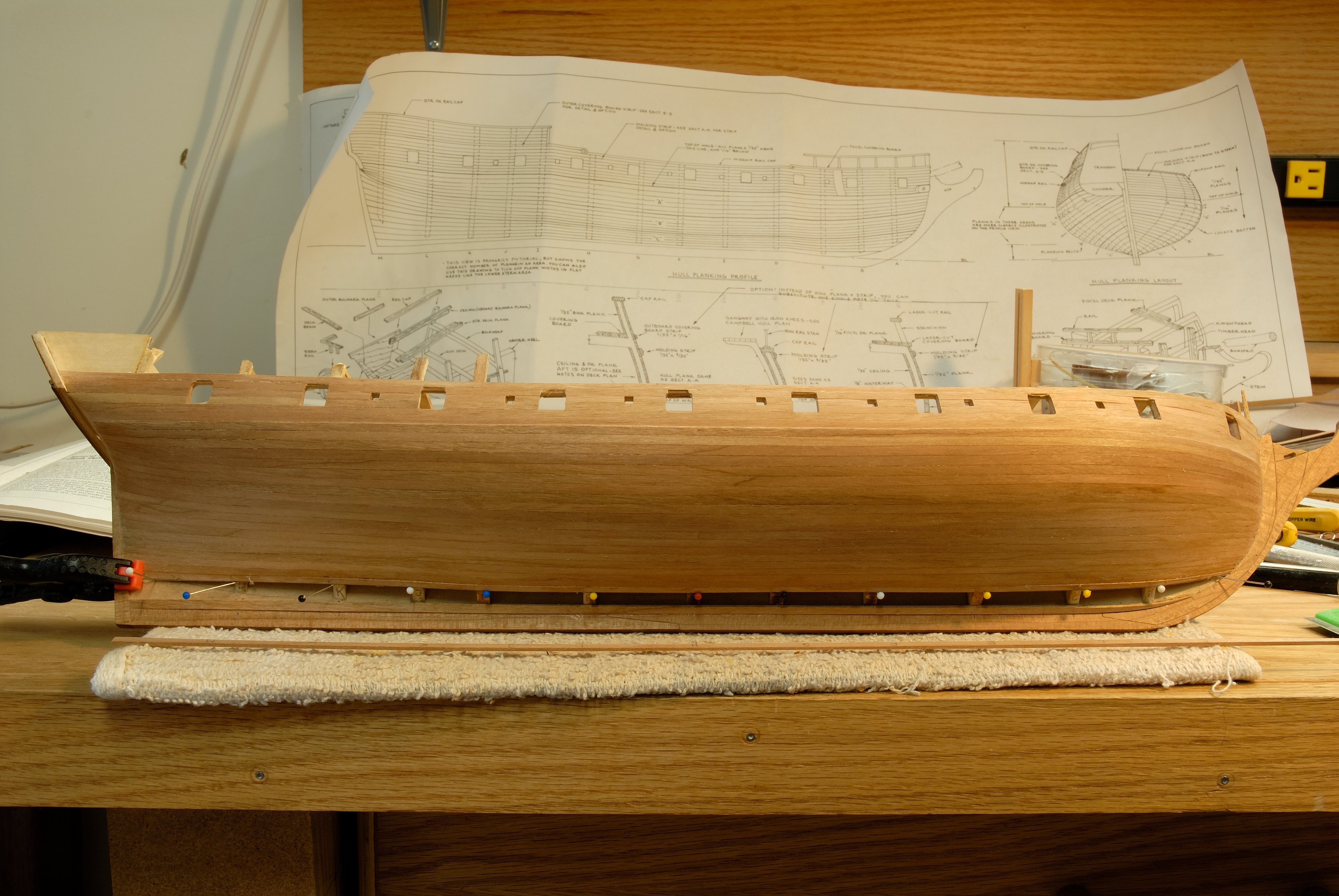Kolejnym krokiem będzie odeskowanie i przyklejenie pokładu, i tu planuje zrobić to inaczej niż sugeruje instrukcja. Producent zaleca użycie jednolitych listew na całej długości pokładu, i narysowanie linii podziału ołówkiem. Cabelinho w swojej relacji wykazał że listwy nie są idealnie równe, i takie podejście powoduje że przy tak długich listwach gdzieniegdzie pojawiają się szpary. W związku z tym planuje pocięcie listewek pokładu na odcinki 60mm (na takie odcinki listwy miały być poźniej dzielone ołówkiem) i przyklejanie tych małych kawałków. Powinno to zminimalizować ryzyko szpar wynikających z nierównej krawędzi na długości całej listwy.
