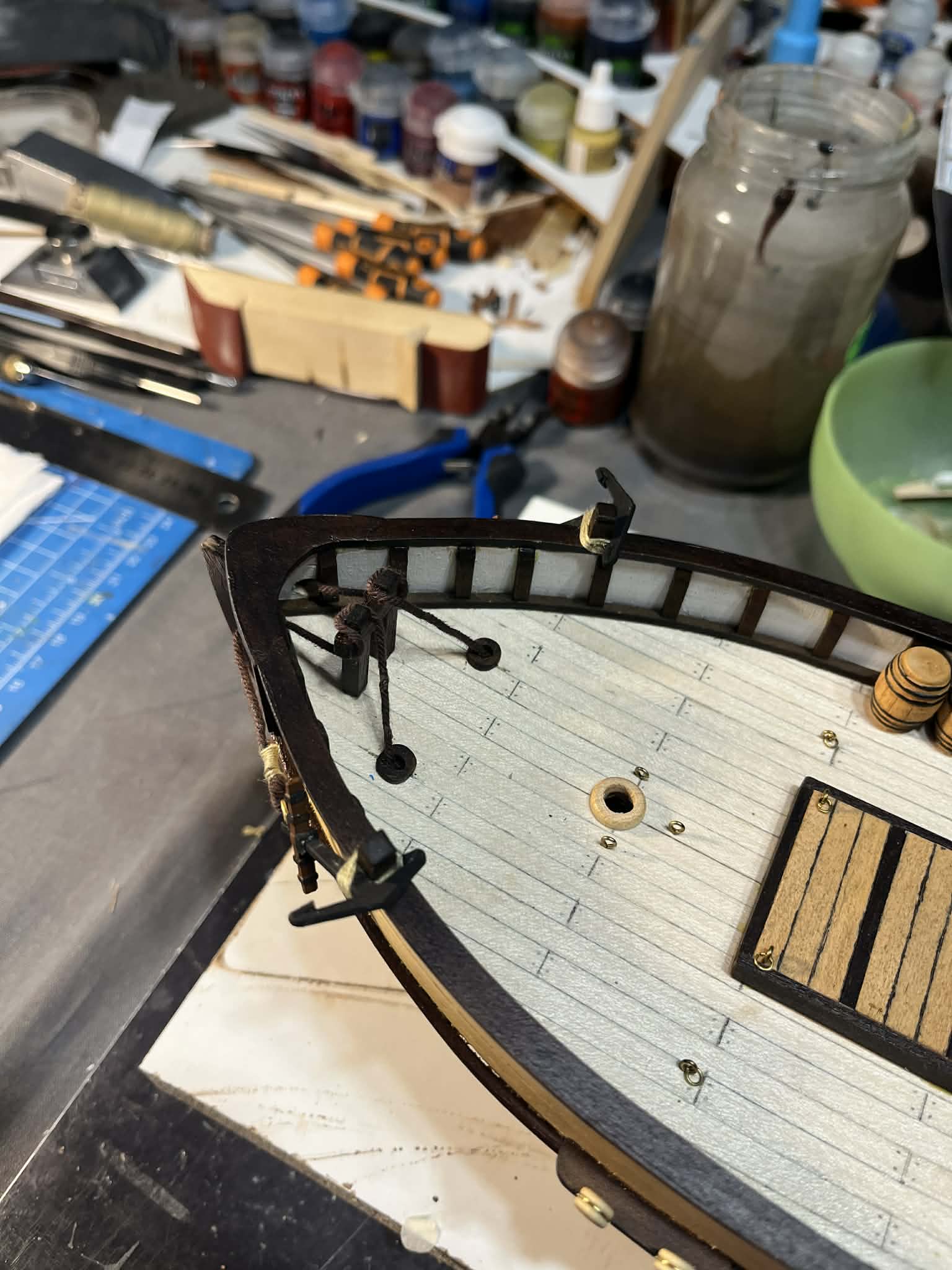 Dodałem bloczki z przodu modelu i zamontowałem przygotowane wcześniej jufersy - bez zaczernienia drucików. Będzie model w trybie *bling* *bling*