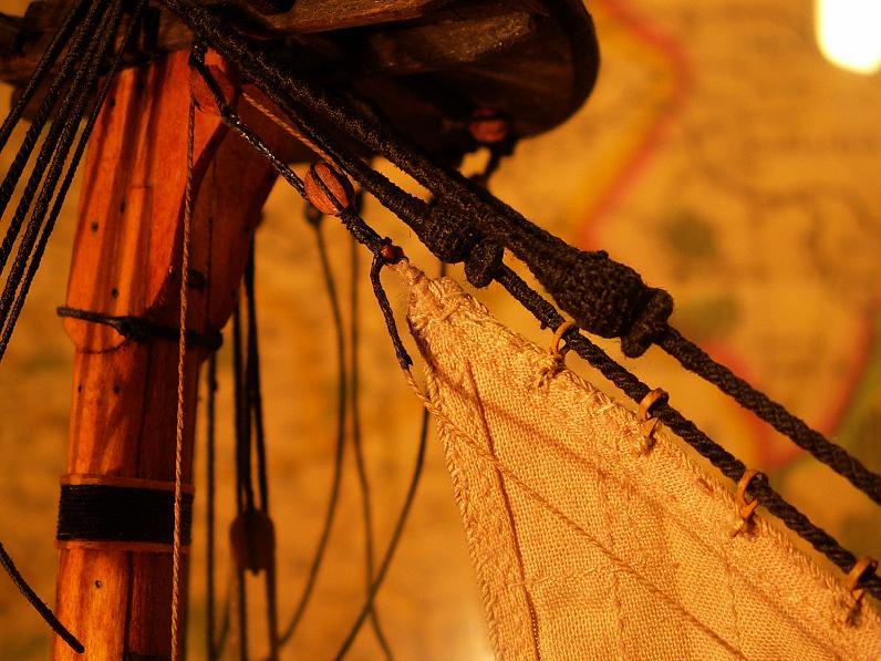 Masz rację Na pokładzie masz masę fajnych drobiazgów i żagle zasłoniły by widok W swojej Karolinie pominąłem żagle po to by pokazać olinowanie i pokład Poza tym żagle przyciągają uwagę a reszta się gubi Jedynie w szkunerze który nie ma nic ciekawego na pokładzie i na kadłubie rozwinę pełne żagle bo one są ozdobą Jeszcze sprawa wiązania wantów na talrepach z lewej są do przodu z prawej do tyłu Pozdrawiam R