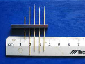 Zapomniałem wspomnieć, ze w przypadku zupełnie małych (cieniutkich) treenaili, których nie daje się już w żaden sposób uzyskać przez przeciąganie bambusa przez stalowa płytę (zbyt cieniutkie treenaile, które się zrywają), można w łatwy sposób uzyskać ich imitacje, która jednak dla oka wygląda najzupełniej "prawdziwie".