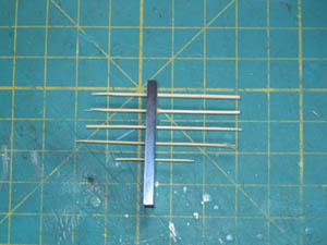 Do fabrykacji miniaturowych treenaili dla modelu, są w zasadzie dwie metody - jedna to przeciąganie cienkich listewek uzyskanych z patyczków bambusowych na szaszłyki z supermarketow, przez serie otworów nawierconych w twardej, hartowanej płytce stalowej, tzw. HSS (high speed steel) - jak zaprezentował nam Mirek, a druga, to wycinanie tych treenaili za pomocą specjalnego nożyka, nasadzanego na diaksę Dremela (dostępnego z amerykańskiej firmy Royal Products, przez internet). W tej drugiej metodzie nie polecam używania bambusa (bo długie jego włókna szybko zapchają nożyk), a raczej inne gatunki twardego drewna, np. gatunki owocowe, bukszpan, klon, jesion, a nawet brzoza.