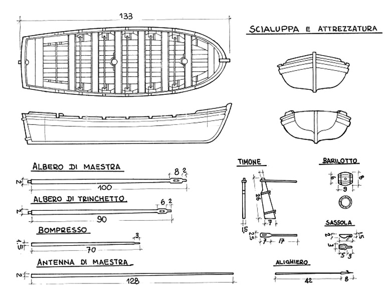 | 2010.11.28 W necie znalazłem pdf modelarza włoskiego: UNA ‘BARCACCIA’ PER LA SANTISIMA TRINIDAD, są tam zawarte informacje o typach łodzi (to już znam z artykułów p. Krzysztofa) ich zastosowanie, instrukcja budowy, przypuszczalne malowanie. Pierwsza ilustracja na pewno nie przedstawia longbota - jest to barka admiralska. < /model ze zbiorów NMM, Greenwich/. W materiałach znajdziemy takie rozwiązania ożaglowania: Santisima Trinidad, La barcaccia e la lancia: Jeden maszt z ożaglowaniem łacińskim. CONSTRUCCIÓN DE BOTES AUXILIARES http://www.modelismonaval...s/galeria1.html http://www.modelismonaval...truccion01.html http://www.modelismonaval...truccion02.html Ożaglowanie francuskiej chaloupe: Trzy maszty, dwa z ożaglowaniem lugrowym, bezan z łacińskim i wystrzałem, bukszpryt i fok. I prezentowana już kilkakrotnie szalupa z National Maritime Museum, Greenwich, London Launch: Dwa maszty, grotmaszt ożaglowanie arabskie, fokmaszt lugrowe. Longboat, 1742 Jeden maszt, ożaglowanie gaflowe, bukszpryt dwa sztaksle. |