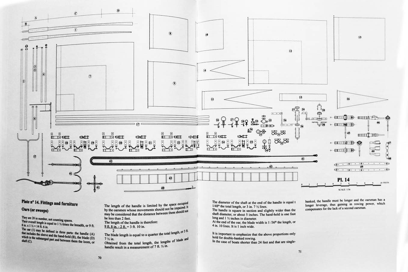 Dalej wiosła, maszty, gafle, wystrzały, żagle, takielunek, kotwicę i trap. To tak w skrócie.