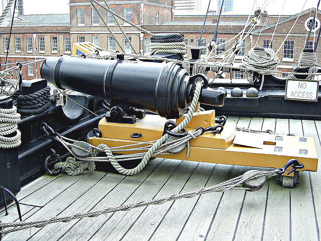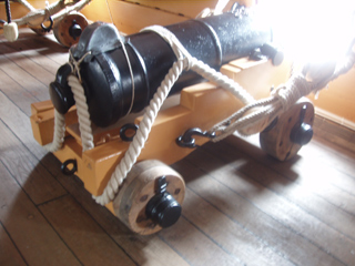 68 Pounder Carronade. Short lightweight gun that fired a heavy round shot at low velocity over a short range. Invented by General Robert Melville and first manufactured by Charles Gascoine of the Carron Iron Works, Stirlingshire, Scotland in 1778.