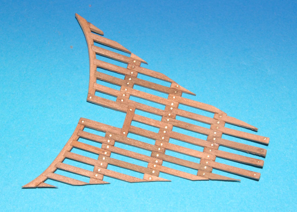 Chcąc waloryzować pokład galionu (czyli tytułowy pokład kosza dziobowego) w modelu z kolekcji zeszytowej DeAgostini "GALEON" szukałem wzorców z końca XVI i pocz. XVII wieku. W tym okresie funkcjonowały przynajmniej trzy metody "poszywania" tego pokładu - w zależności od kraju. Co prawda mam wątpliwości co do typowych (współczesnych) kratownic/gretingów na holenderskiej Batavii (1628), gdyż to replika i pokład mógł być "nieco" zmodyfikowany dla współczesnego matrosa w celach zachowania bezpieczeństwa, ale nie neguję, że mogła być już wtedy kratownica chociaż wg schematów powyżej wynika, że typowa kratownica pojawiła się w Anglii po roku 1750. Na modelu Batavii w „Shipwreck Museum” w Fremantle (tam znajdują się szczątki Batavii) takiego pokładu nie ma.
