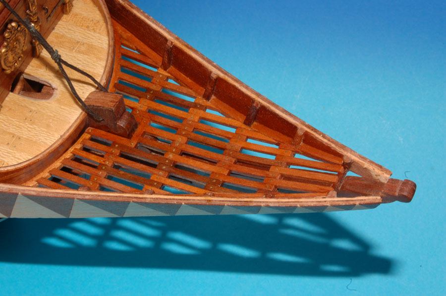 Na przednim odcinku galeonu z XVII wieku, między czubkiem galionu a przednim krańcem kadłuba, znajdowała się trójkątna platforma oraz szereg elementów dekoracyjnych lub wzmacniających.