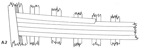 Rysunek A-2 Widać, że w to wycięcie przyłożono inny kawałek krótkiej listewki z identycznym ząbkiem, ale jej górna krawędź biegnie nieco wyżej od krawędzi oryginalnej listewki. To będzie nasz stealer .