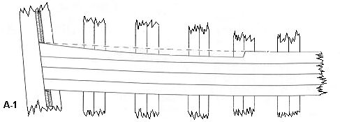 Rysunek A-1 Górna listewka została nacięta w ząbek i cześć z niej wycięto - linią przerywaną zaznaczono pierwotny kształt listewki .