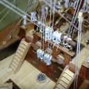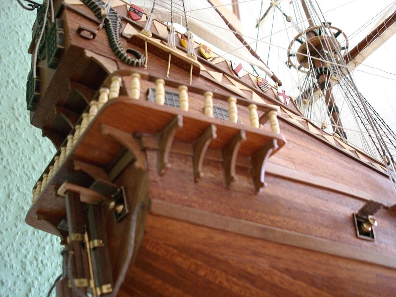 Galeon wykonany ściśle w/g instrukcji wydawnictwa DA. Zakończenie budowy określam na 2005-2006 rok. Wtedy jeszcze nie wiedziałem, że istnieje takie zwierzę jak KOGA. A szkoda, bo wiele mógłbym zmienić, wzorując się na relacjach wielu kolegów. Jest to mój pierwszy model drewniany.